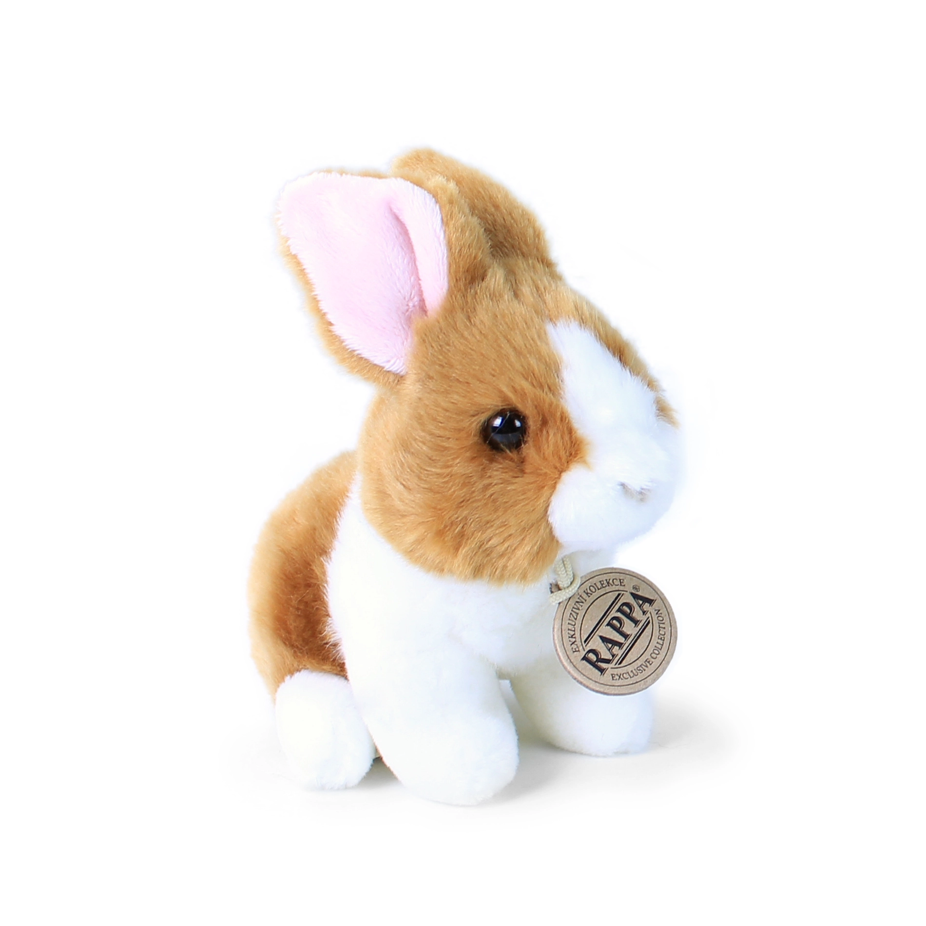 Това бяло‑кафяво плюшено зайче е изработено от висококачествени материали и благодарение на ръчната изработка изглежда като живо. Меката козинка приканва към гушкане, а компактният размер от 16 см е идеален за легълце, количка и път.