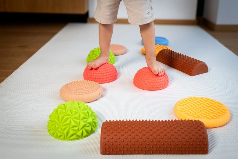 Куполи, дискове и полувалове с издатини и шарки активират рецепторите на стъпалата, подобряват проприоцепцията и подпомагат естественото оттласкване и търкаляне на стъпалото.