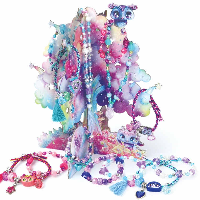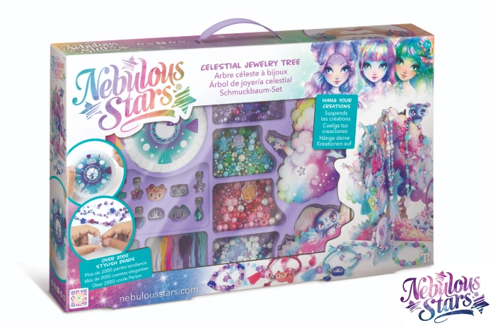 Открийте света на творчеството с креативния комплект Nebulous Stars, който ще зарадва всеки малък дизайнер на бижута. Опаковката съдържа всичко необходимо за изработка на уникални гривни и колиета – от цветни връвчици и мъниста до стилни висулки. Готовите бижута децата могат елегантно да окачат на Звездното дърво, което служи като красива поставка и украса за стаята.
