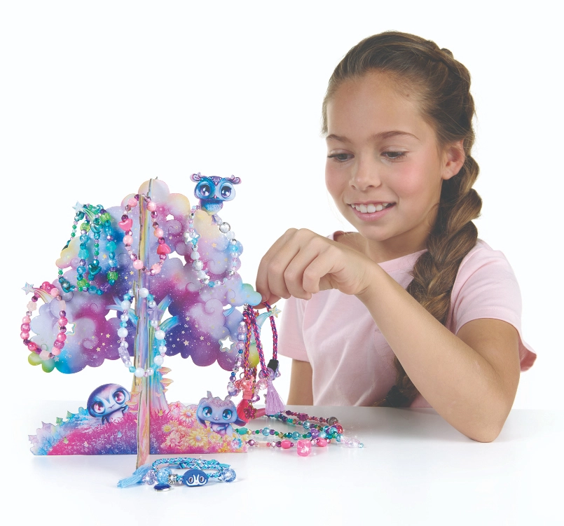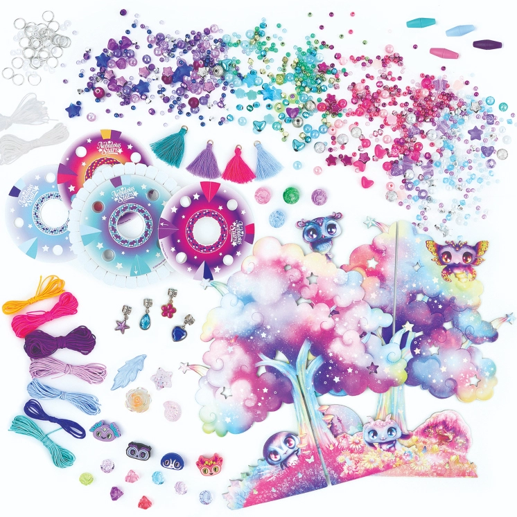 Създайте свои собствени оригинални гривни и колиета с вълшебния комплект Nebulous Stars. Включва декоративно Звездно дърво за изложение на готовите бижута, над 2000 мъниста, цветни връвчици и висулки за безкрайна креативност. Идеален подарък за малки творци, които обичат низането на мъниста и фантазията.