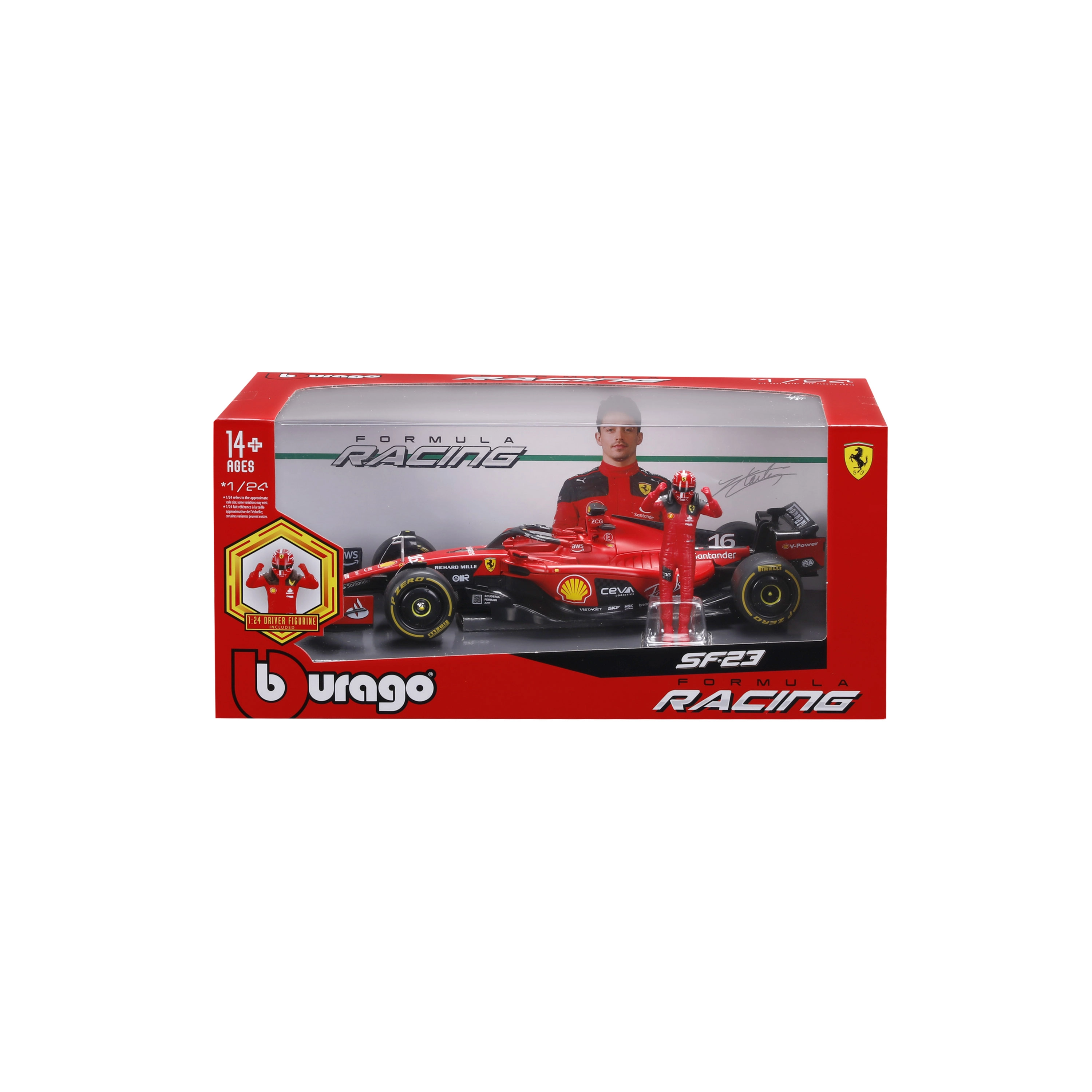 Почувствайте атмосферата на кралския моторен спорт с прецизно изработения модел Ferrari SF23 (2023). Метален корпус с фини линии, аеродинамични елементи, предно и задно крило, защитна рамка halo и автентични декорации на спонсори превръщат този модел в перфектно допълнение към всяка колекция.