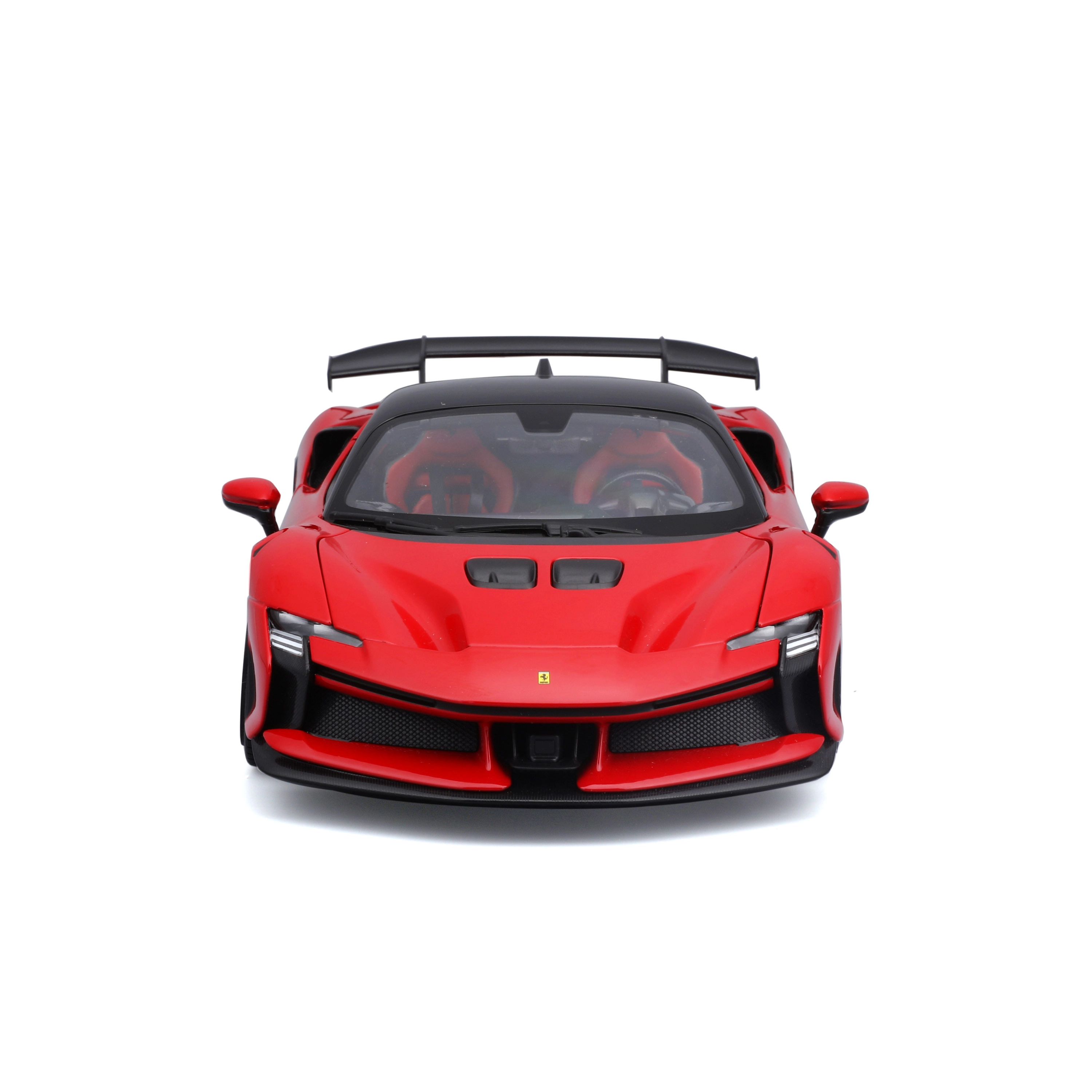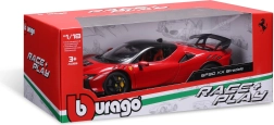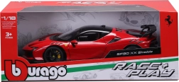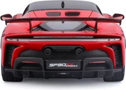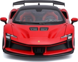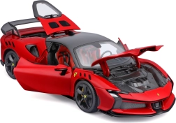 Прецизен колекционерски модел на Ferrari SF90 XX Stradale в мащаб 1:18 с отварящи се елементи, детайлен интериор и въртящи се колела. Идеален за витрина и за леко играене, впечатлява с вярна пропорция, спортна аеродинамика и качествена изработка на Bburago.