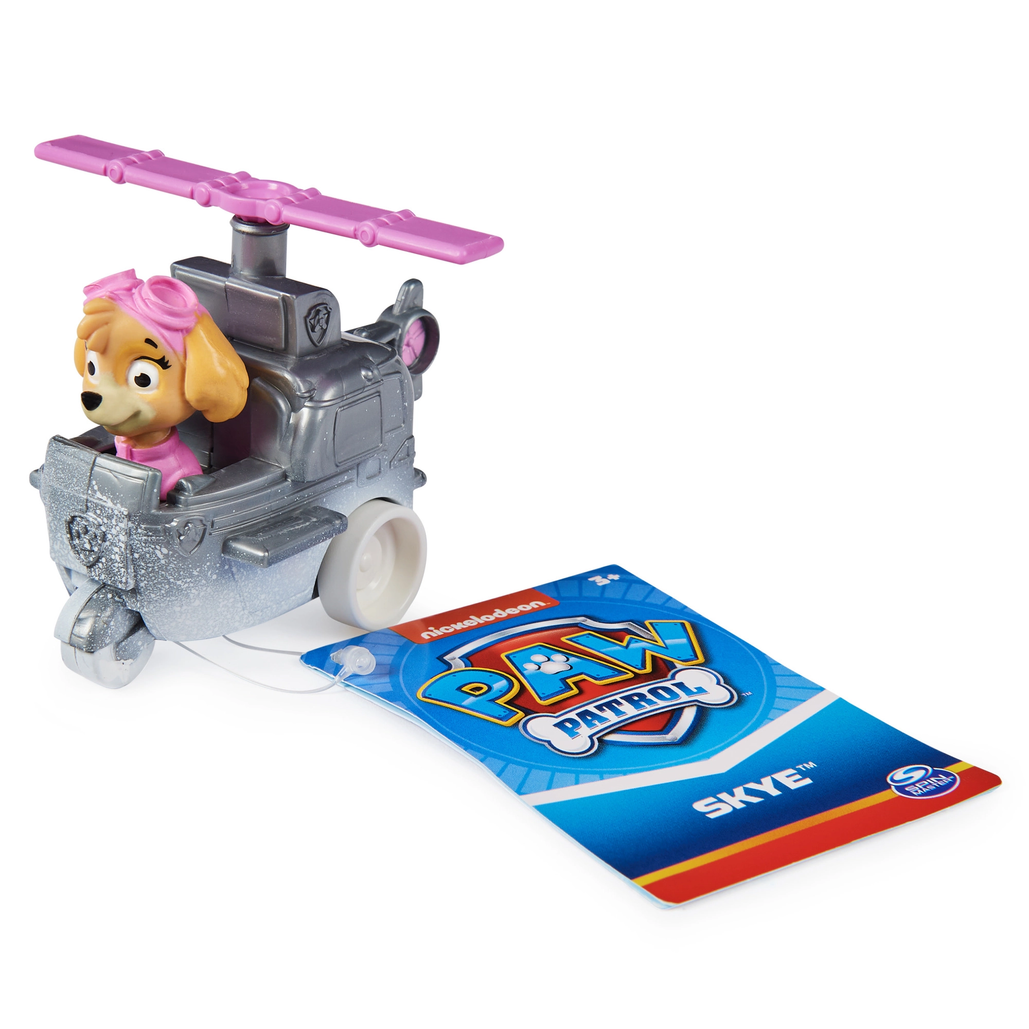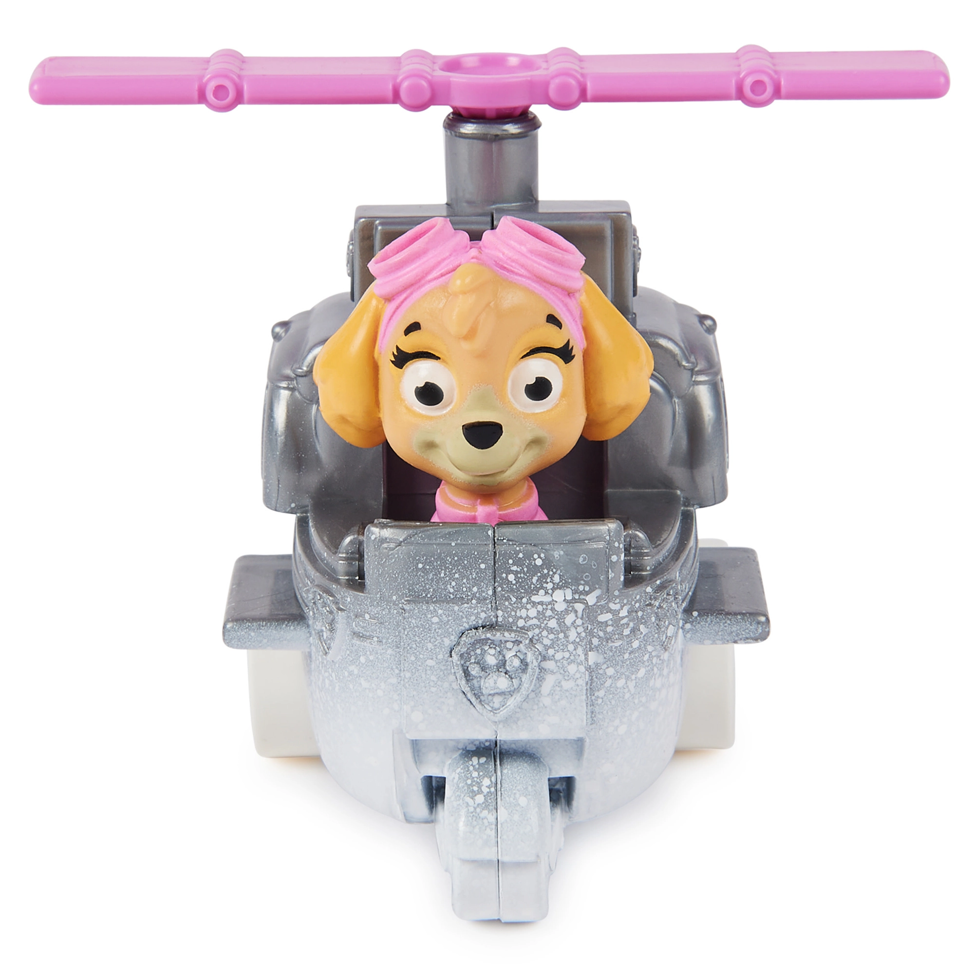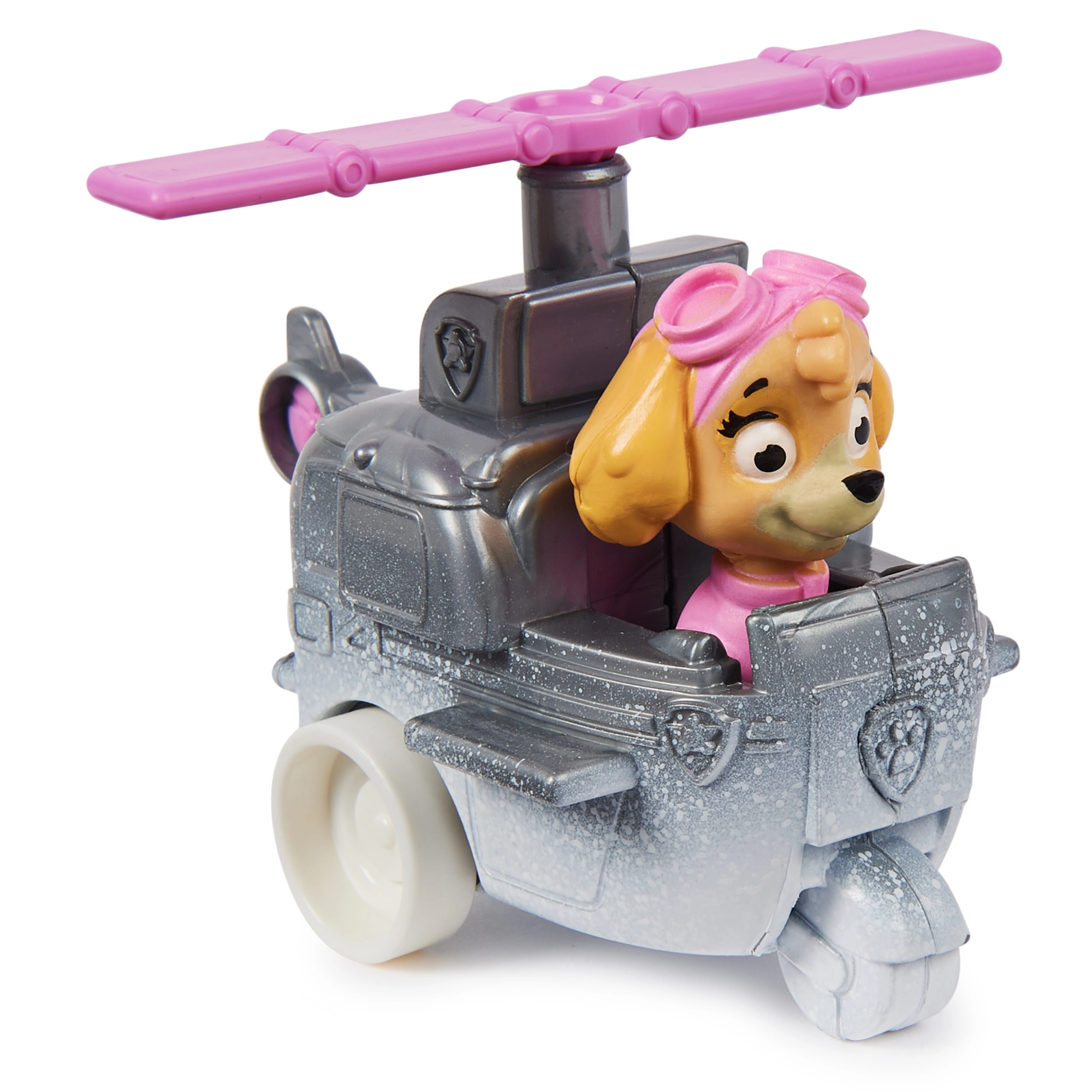 Поемете на спасителна мисия със Skye в нейния емблематичен сребърно-розов снежен хеликоптер. Детайлите с ефект на „сняг“ придават зимна атмосфера и стимулират детското въображение. Благодарение на издръжливата изработка и размер от 8 см е идеален за пътуване и за детската стая.