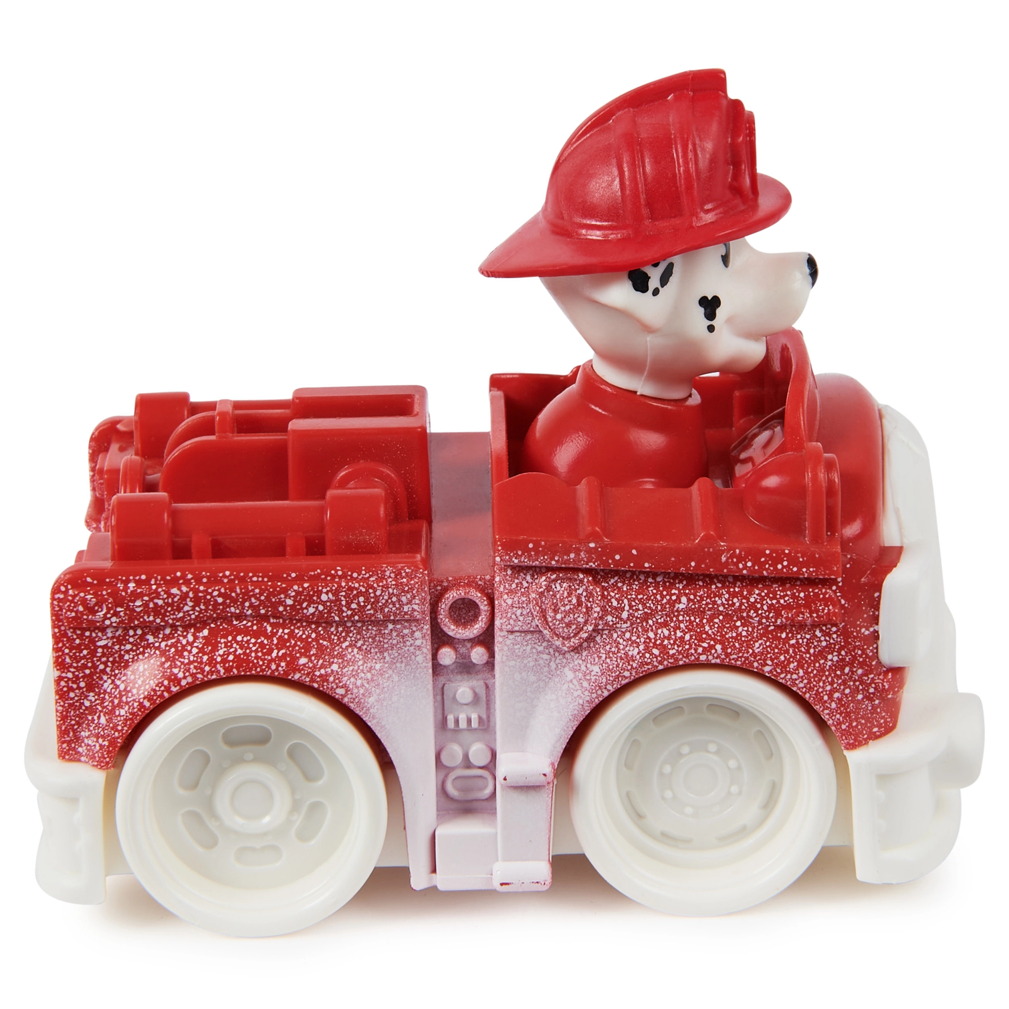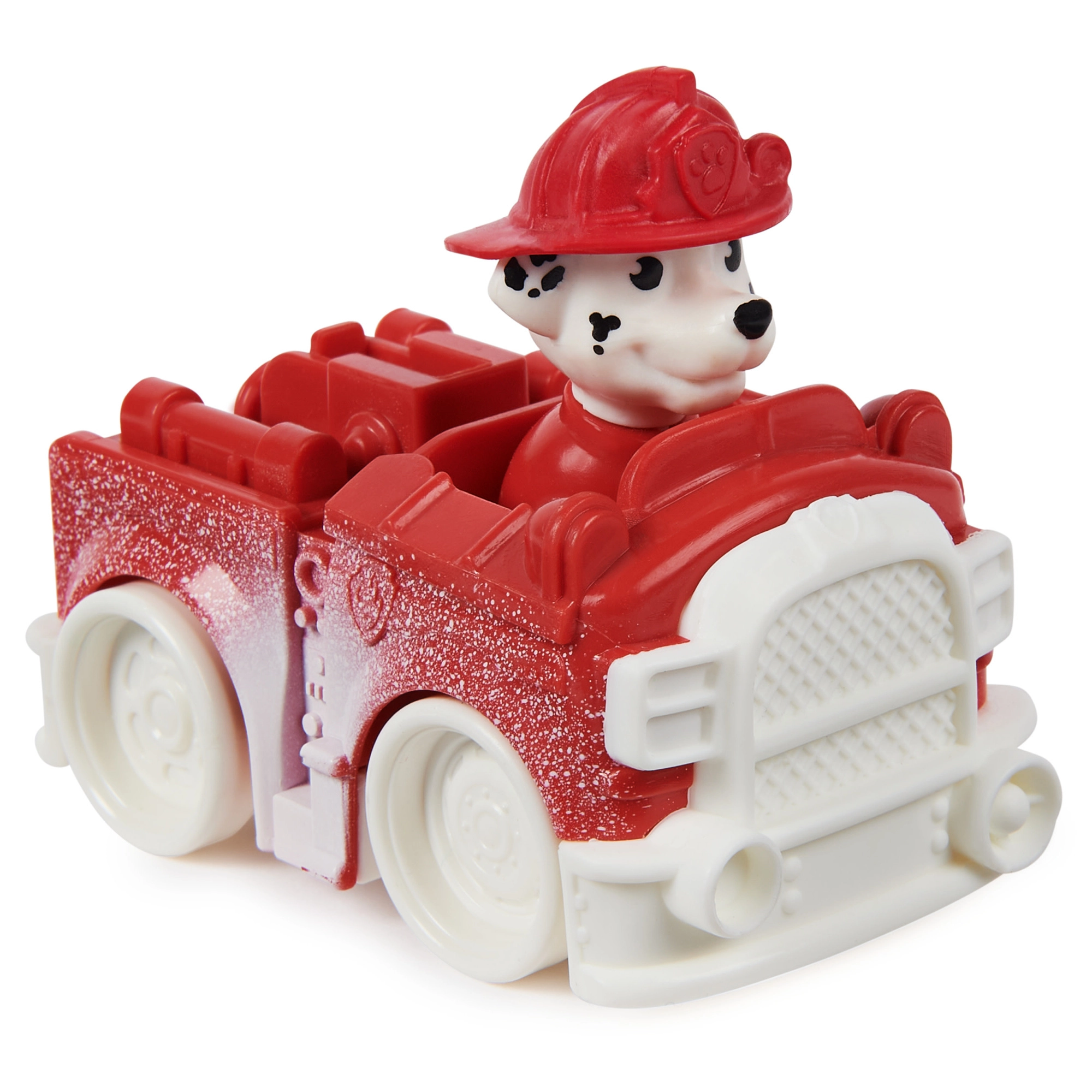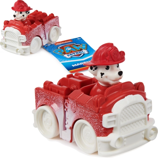 Малък, но динамичен снежен пожарен автомобил с кученцето Маршал от марката Spin Master ще зарадва всеки фен на PAW Patrol. Компактното превозно средство с дължина 7 см има въртящи се колела, зимни „снежни“ детайли и интегрирана фигурка с каска, готова за всяка спасителна мисия. Перфектно за развитие на въображението и пресъздаване на любими сцени.