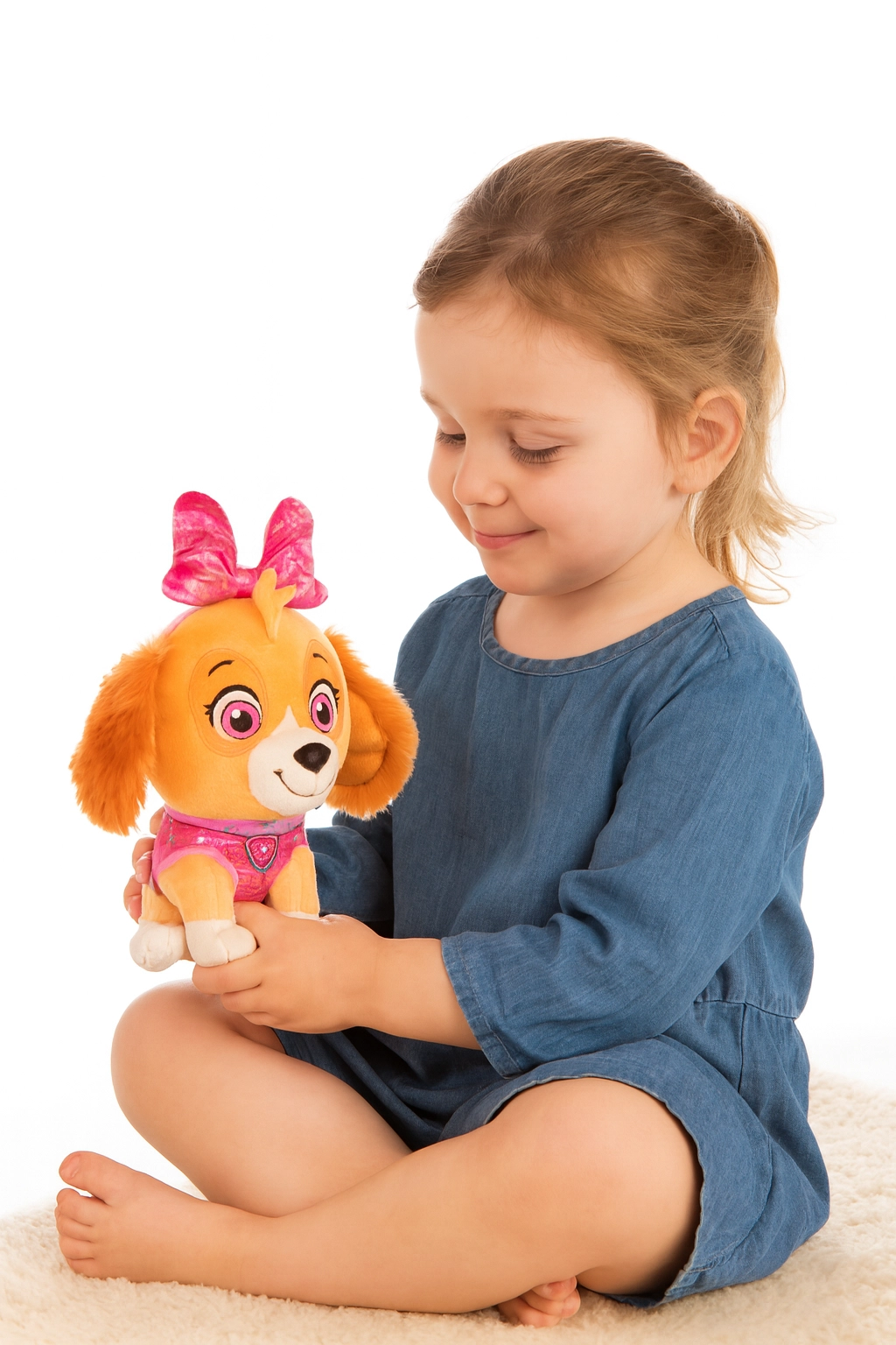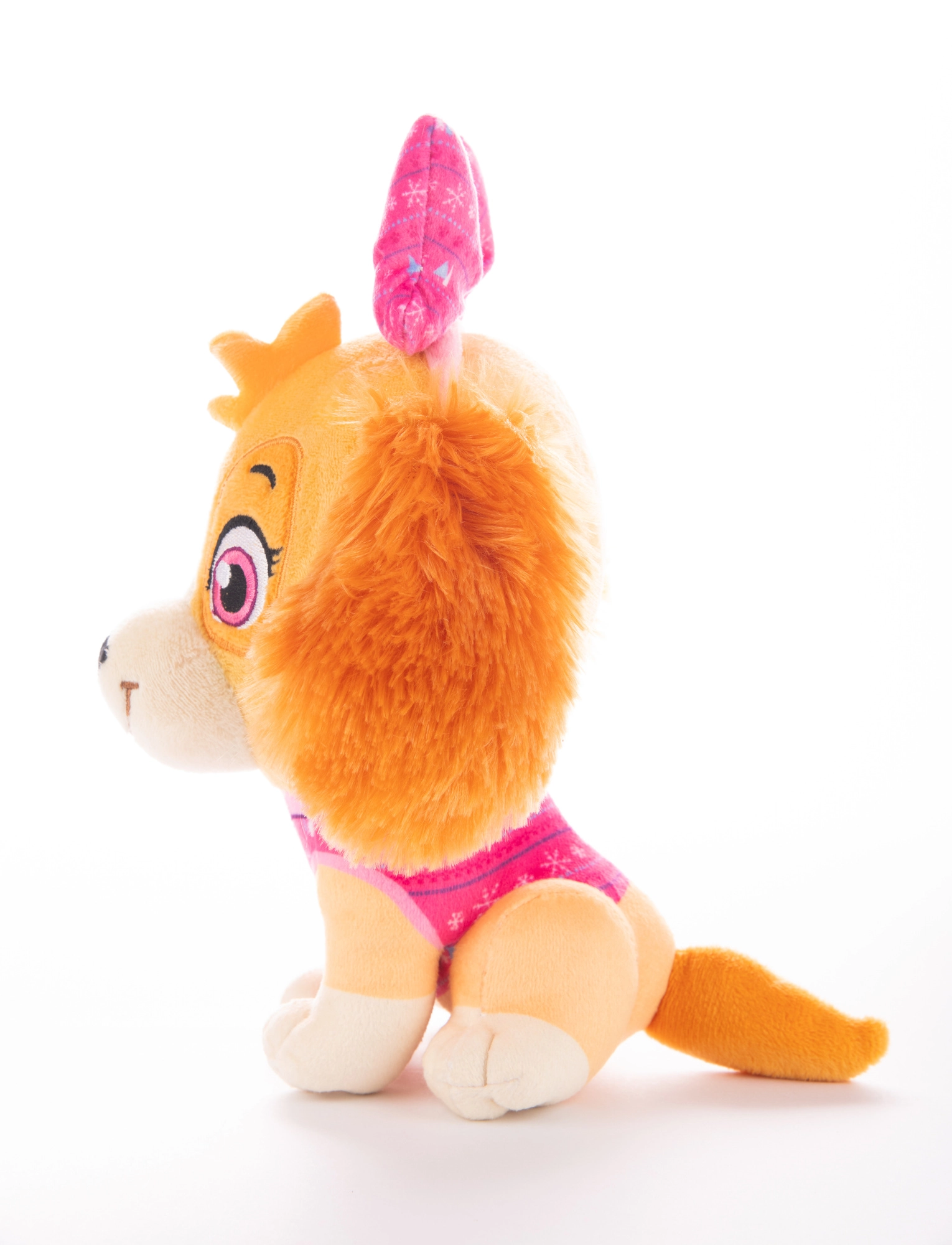 Скай има характерни розови детайли и стабилна седяща поза, така че изглежда чудесно и като декорация за детската стая. Универсален подарък за почитатели на сериала ПЕС ПАТРУЛ, който радва през цялата година.