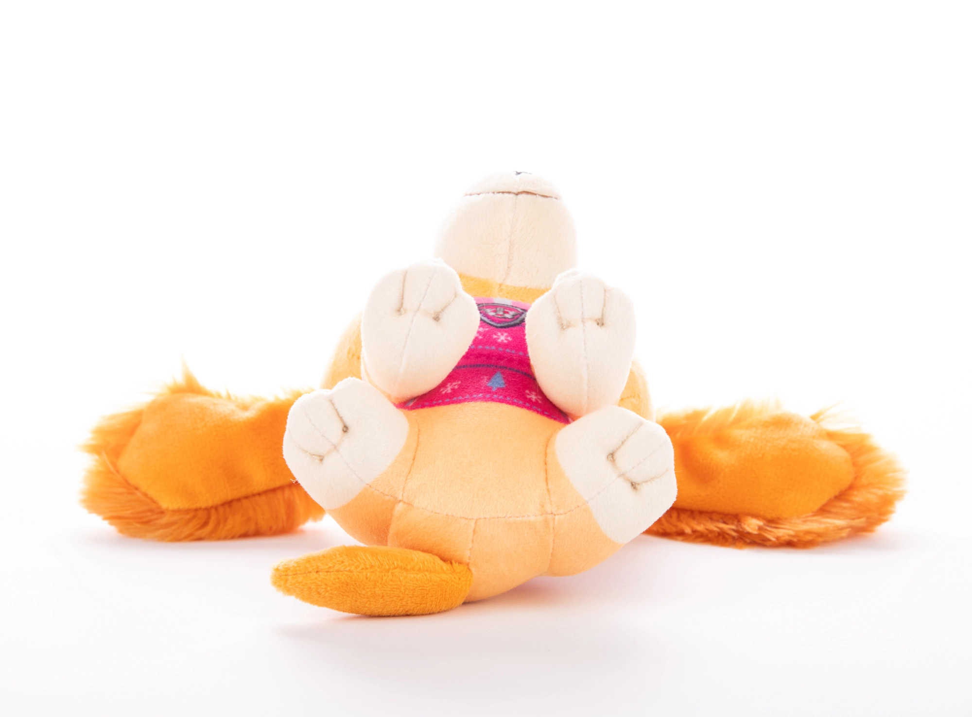Тази нежна плюшена Скай е създадена за удобно гушкане и ежедневна игра. Благодарение на мекия плюш и прецизната изработка лежи приятно в ръката и безопасно съпровожда децата у дома и по време на път. С извезани очи и усмивка без свободни елементи е подходяща и за по-малки деца.