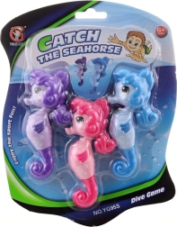 Оживете къпането и игрите в басейна с комплекта потъващи морски кончета. Благодарение на малкия размер и балансираното тегло, кончетата потъват към дъното и мотивират децата да плуват, да се гмуркат и да подобряват координацията си. Издръжливата пластмаса издържа на честа употреба във вода и се почиства лесно.