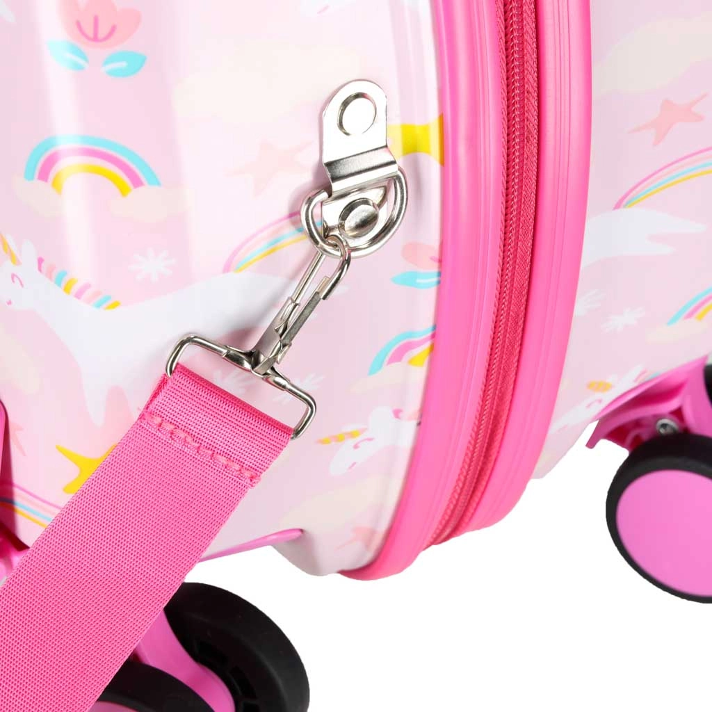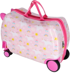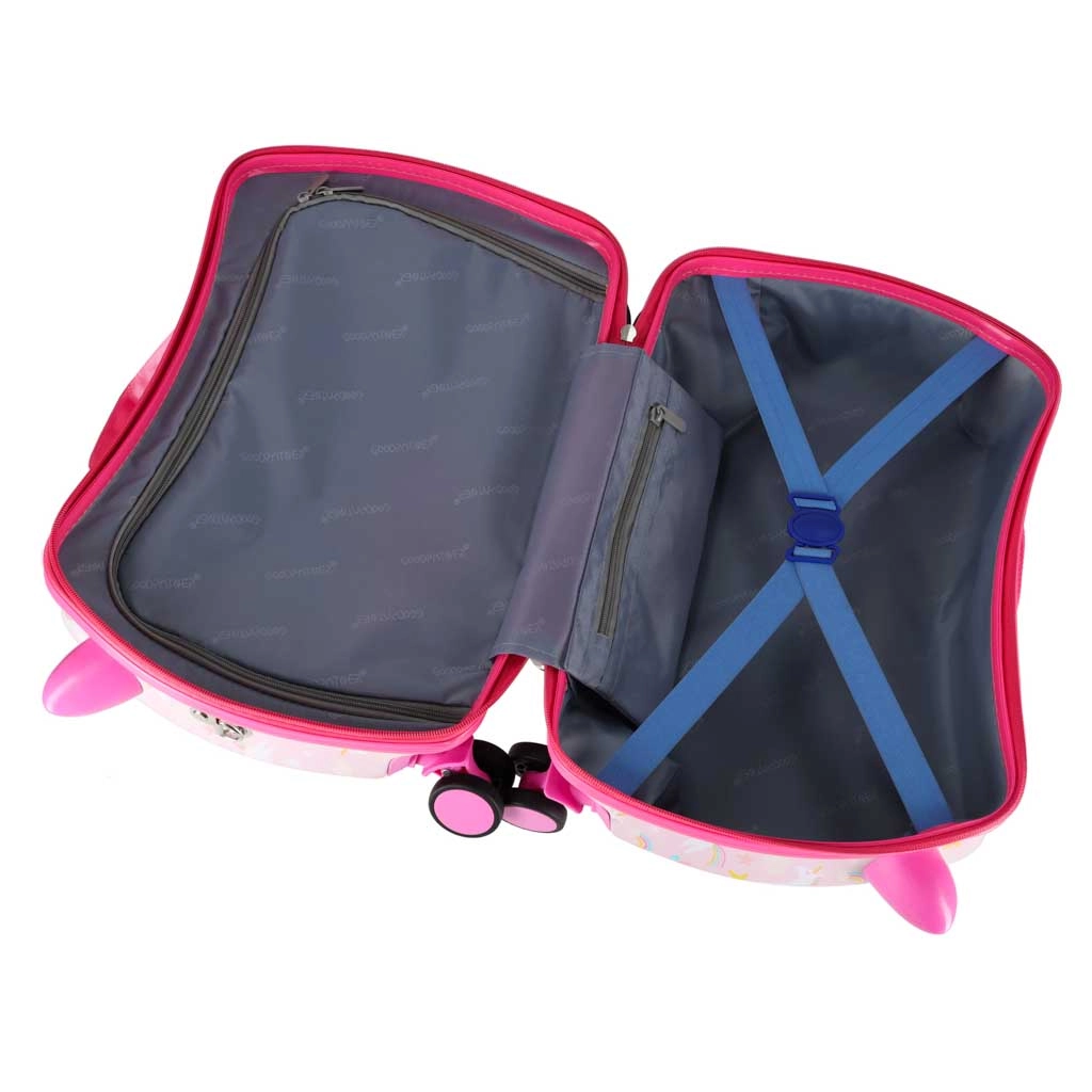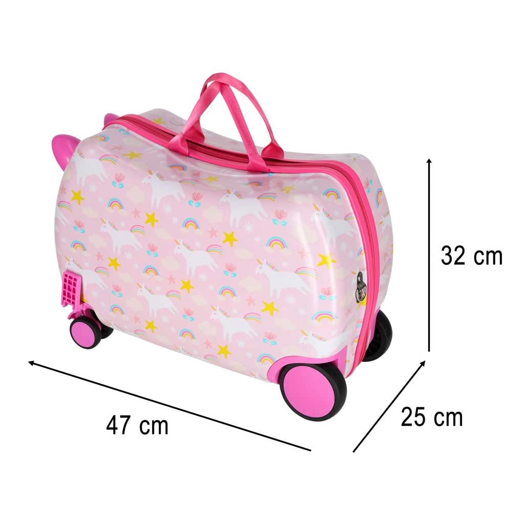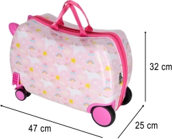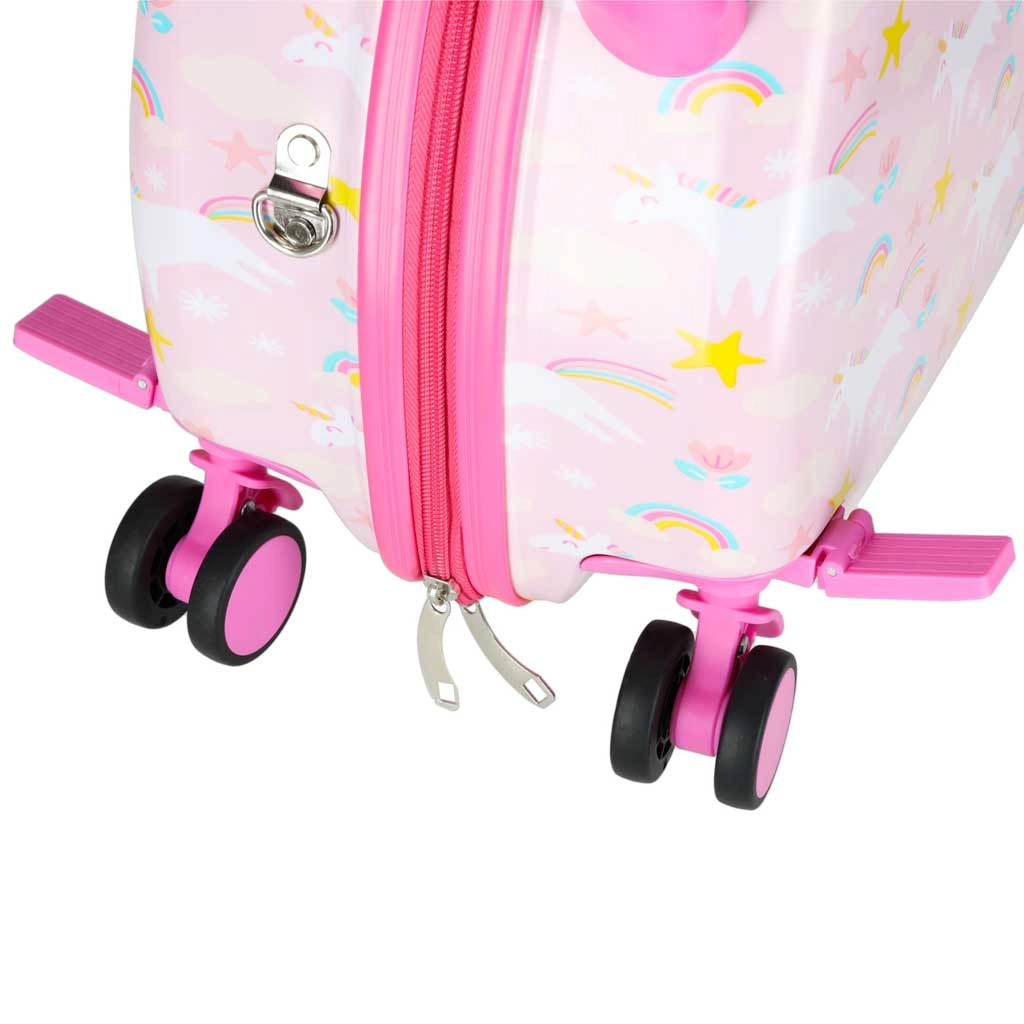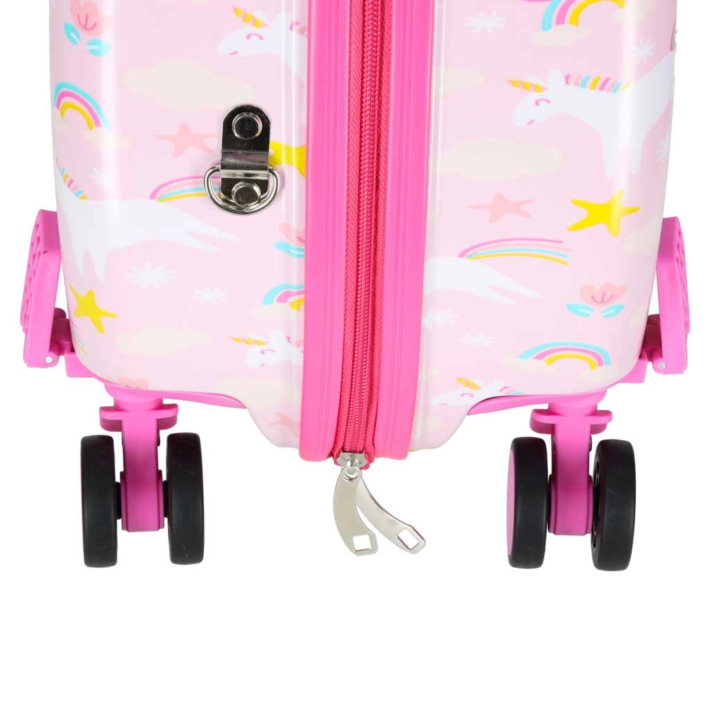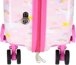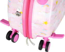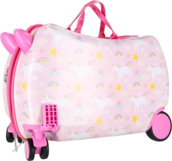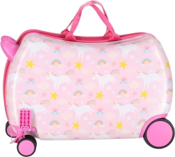 Подари на децата забавно и безгрижно пътуване. Този детски куфар на колелца съчетава удобство, функционалност и приказен дизайн с еднорог. Благодарение на кабинните размери е идеален като ръчен багаж, а неговата твърда корпусна обвивка предпазва съдържанието от удари.