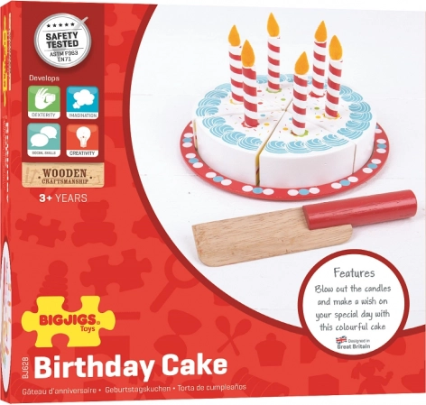 Открийте магията на празника с нашата дървена рожденденска торта за рязане от Bigjigs Toys. Тази играчка е идеална за малки деца, които опознават света чрез забавни и интерактивни игри. Тортата е достатъчно голяма за шестчленна играчка-компания и включва дървен нож за лесно рязане.