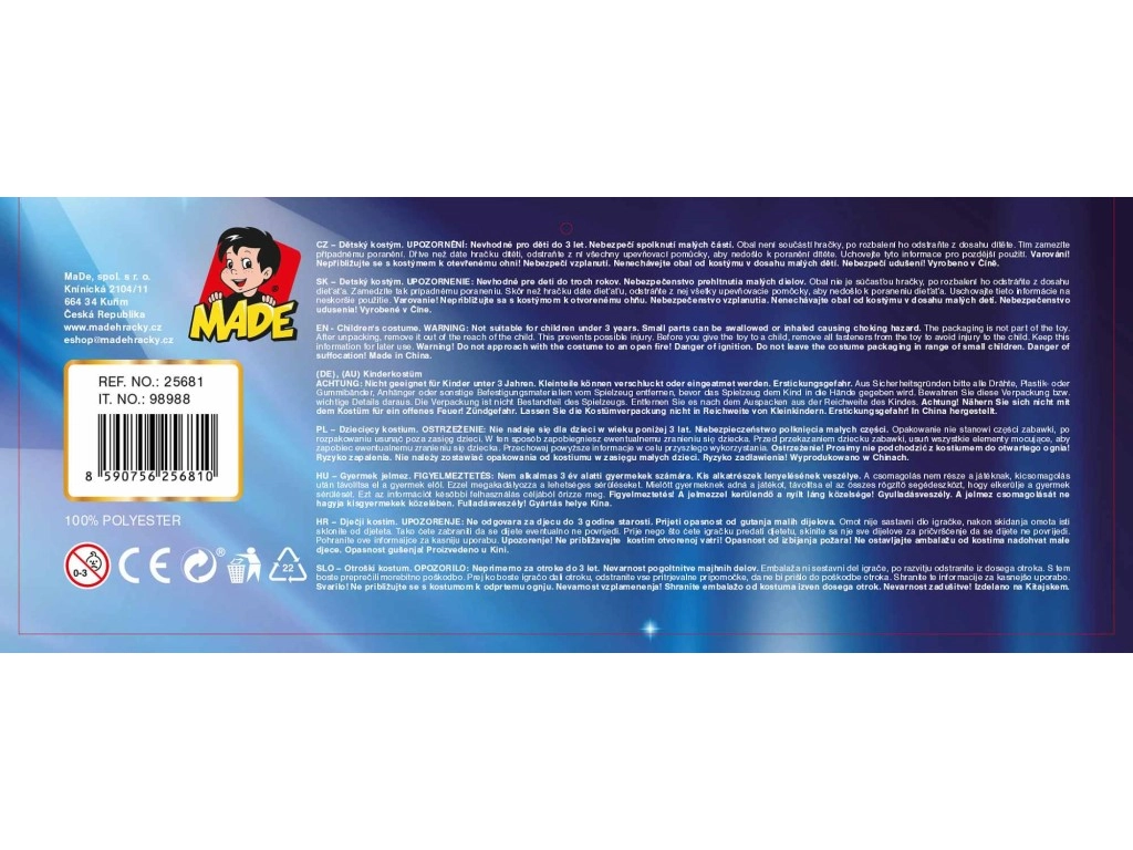 Размерът е предназначен за малки деца с ръст 110–120 см. Препоръчителна възраст от 3 години.