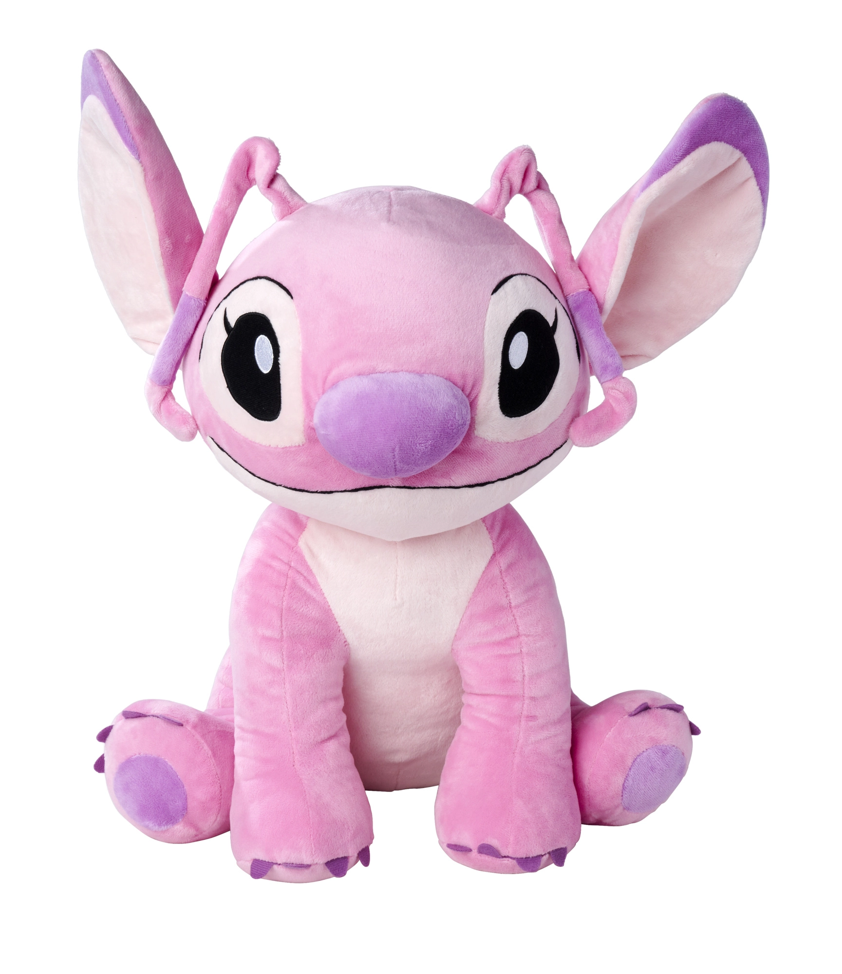 Плюшената Angel е розова извънземна с големи бродирани очи, очарователно носленце и меки лапички. Играчката по мотиви от Disney Lilo & Stitch е изработена от приятен, висококачествен материал, който приканва към гушкане и отмора. Благодарение на балансираното седящо телце лесно се поставя за изложение в детската стая.