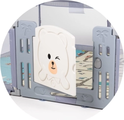 Здрава пластмасова вратичка със сладък мотив и сигурна ключалка улеснява влизането и излизането. Двете помощни халки подпомагат децата да тренират моторика, захват и първи стъпки. Продуктът отговаря на стандарта EN 12227:2010, така че имате гарантирана проверена безопасност.