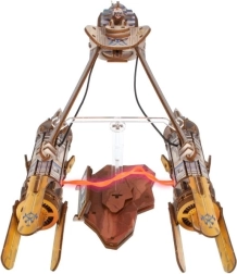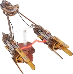 Сглобете емблематичния състезателен подрастър на Анакин Скайуокър от света на Star Wars и го изложете на елегантна поставка с ефект на полет. Моделът от цветен шперплат предлага LED плазмена дъга между двигателите, отворяем кокпит с фигурка и странично поклащане, симулиращо полет. Сглобяването се извършва без лепило и инструменти, така че е подходящо както за колекционери, така и за ентусиасти по моделите.