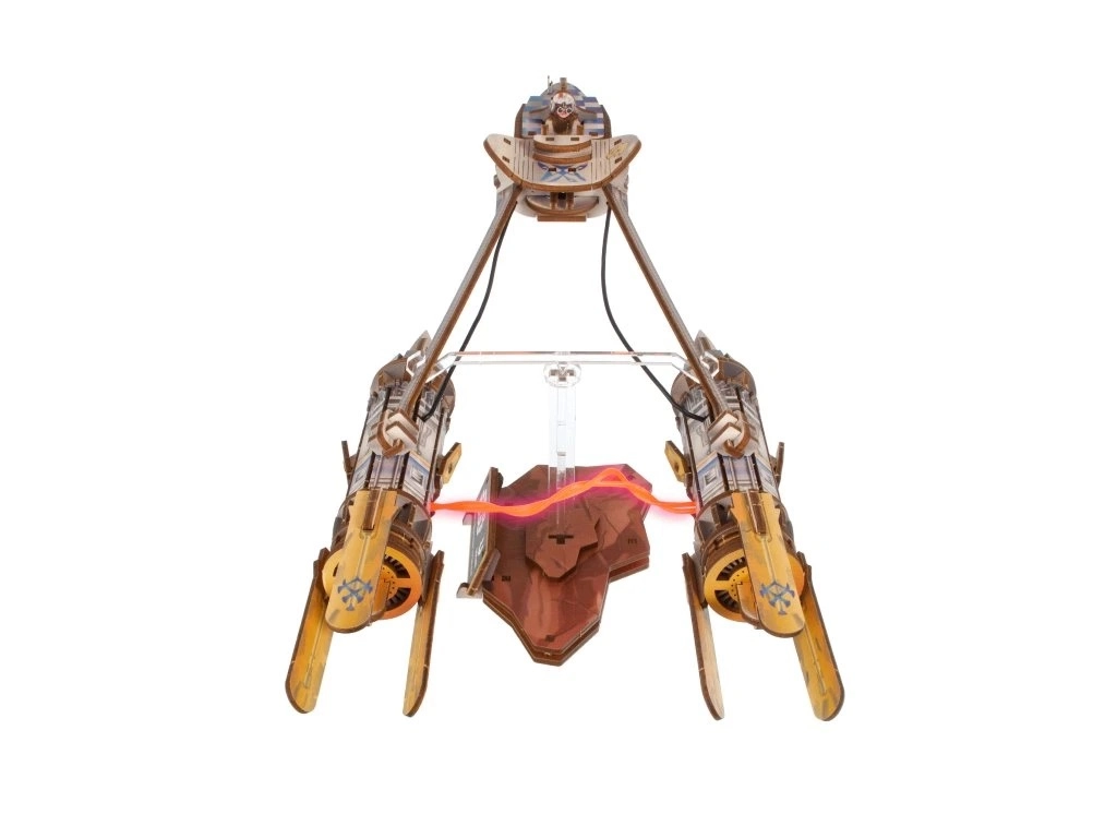 Двата двигателя са свързани с гъвкави LED проводници, захранвани от батерии (не са включени), които създават емблематичния ефект на плазмената дъга, познат от Boonta Eve Classic.