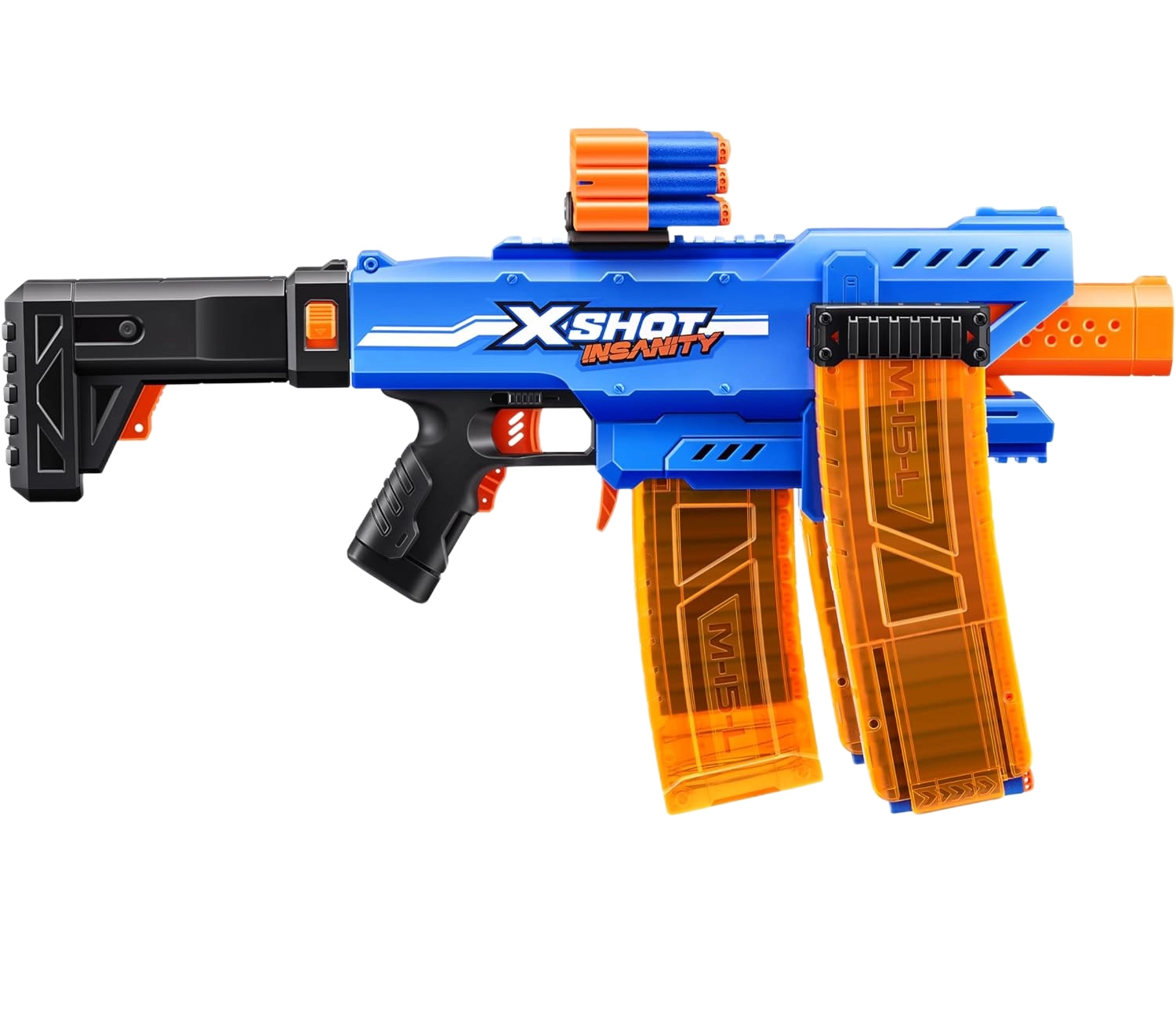 Насладете се на динамични престрелки с моторизирания бластер ZURU X-SHOT INSANITY. Автоматичният механизъм осигурява плавна, бърза стрелба и лесно презареждане благодарение на сваляемите пълнители. С големия запас от боеприпаси и удобния захват е готов за интензивно действие без излишни паузи.