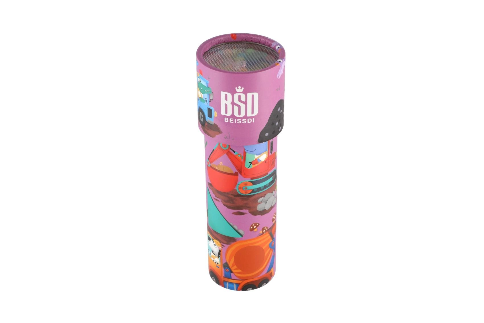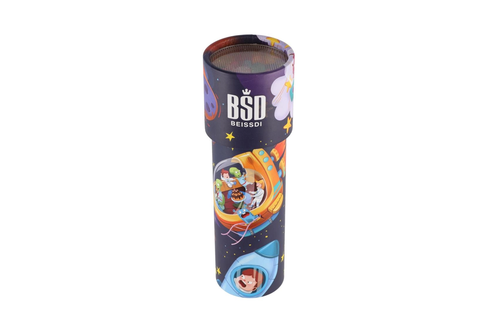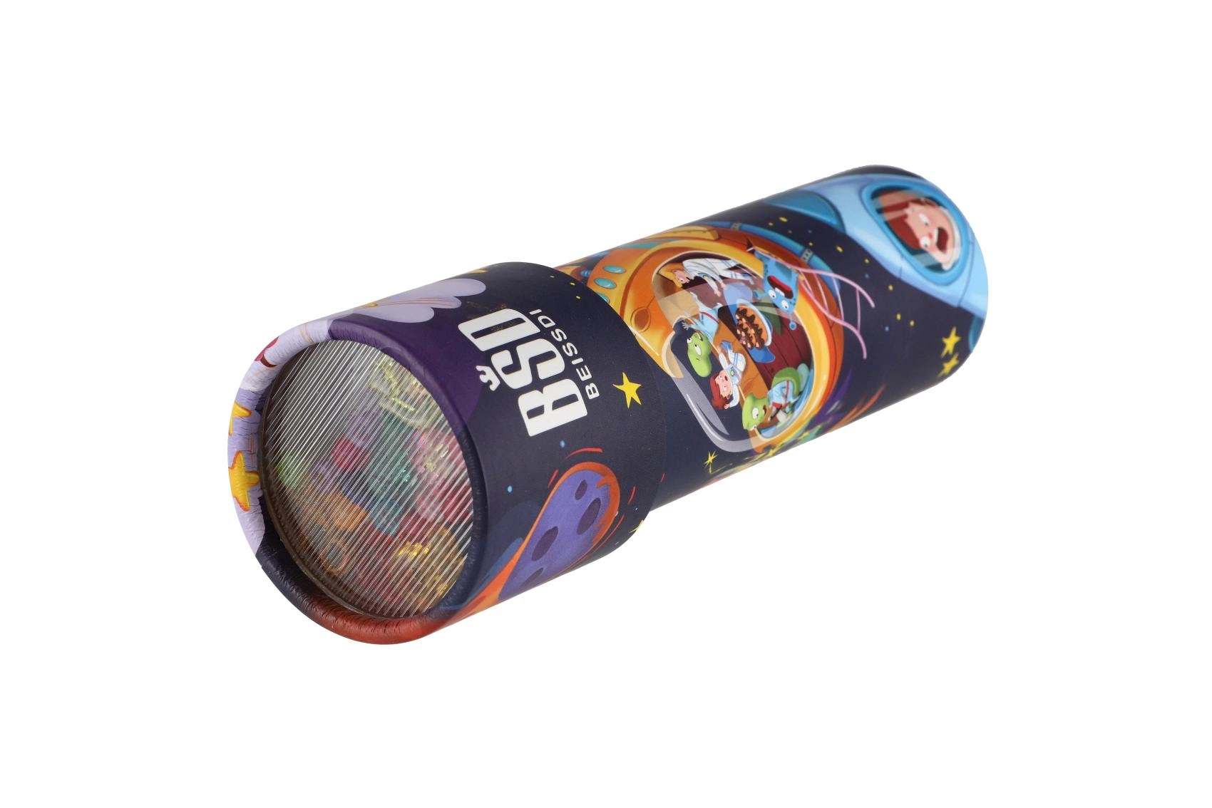 Игривите цветни щампи привличат вниманието и подпомагат развитието на въображението, наблюдателността и фината моторика. Калейдоскопът е чудесен избор като малък подарък, награда или забавление по време на път.