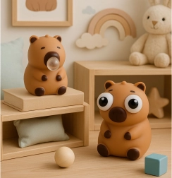 Сладка антистрес стискаща играчка във форма на капибара за деца и възрастни. При стискане се появява прозрачно балонче или изскачат големи очи, което носи мигновено отпускане и забавление. Изработена е от мек, еластичен материал, който след стискане се връща в първоначалната си форма. Идеална за училище, офис и пътуване.