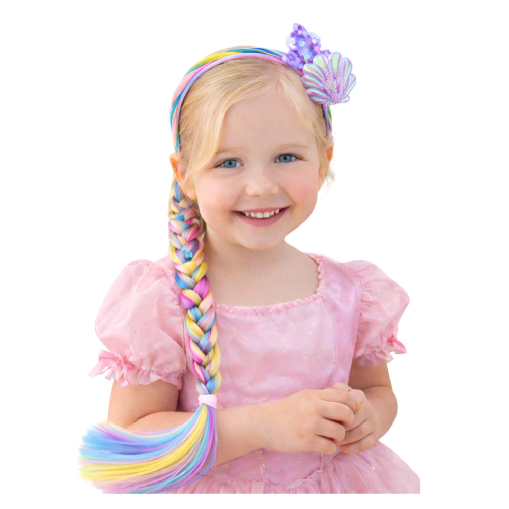 Подарете радост от създаването на прически с диадема, вдъхновена от света на русалките. Дългите дъгови кичури позволяват лесно сплитане на ефектни плитки и създаване на оригинални стилове за празненства, карнавали и ежедневни игри. Очарователният декор опашка на русалка добавя магичен привкус към визията.