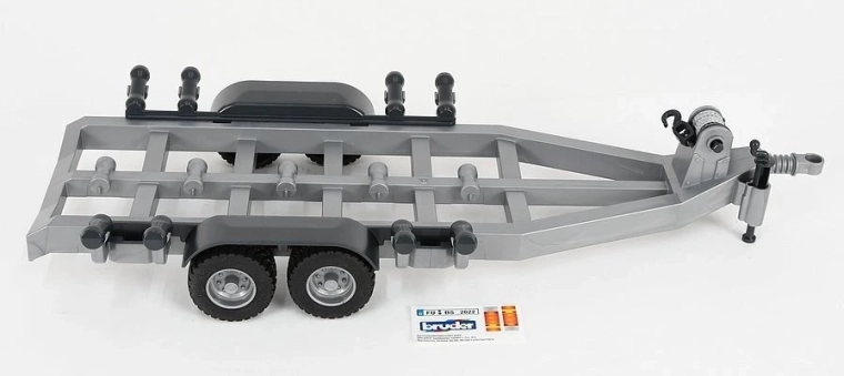 За лесно управление е оборудвано със скапаща се товарна рампа за плавно товарене и разтоварване. ABS пластмасата осигурява висока устойчивост на удари и износване, а офроуд гумите и стабилните оси се грижат за гладко движение извън пътя. Ремаркето е напълно съвместимо с автомобилите RAM на Bruder – достатъчно е да го закачите за теглича и приключението може да започне.