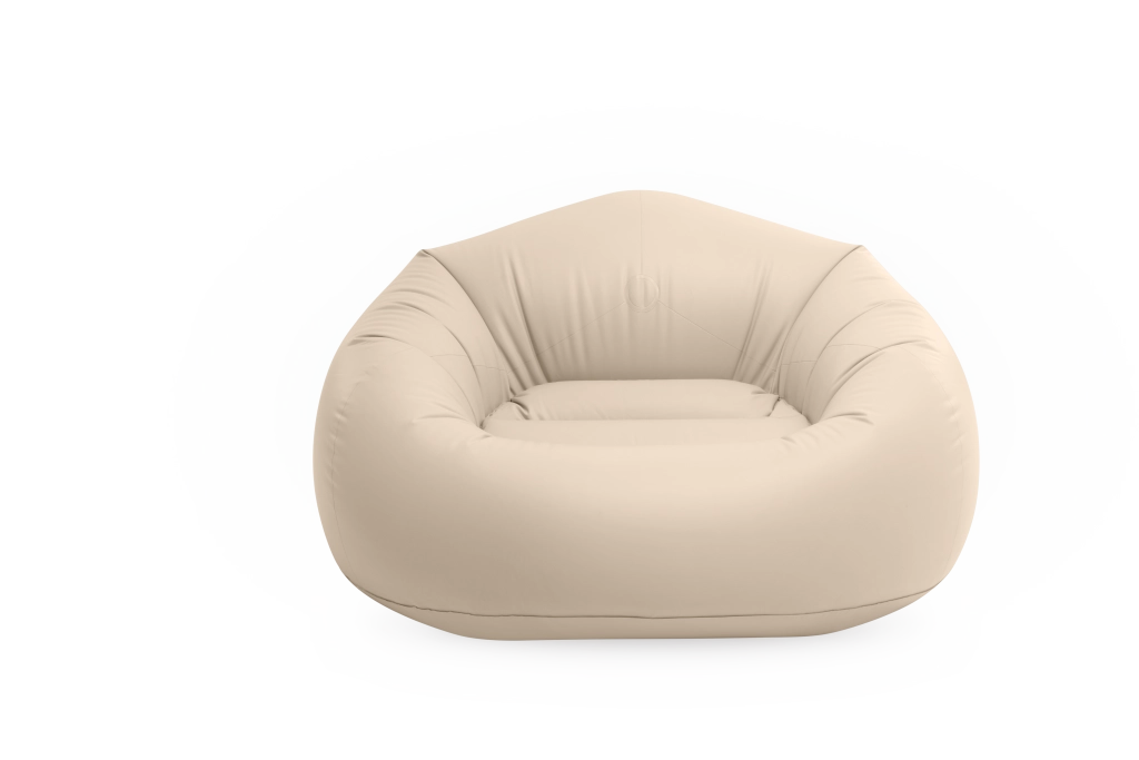 Насладете се на удобство навсякъде и по всяко време с надуваемия стол Beanless Bag. Благодарение на ергономичната форма, удобната облегалка и широките подлакътници предлага страхотен комфорт както у дома, така и навън. Леката и компактна конструкция се надува и изпуска лесно, докато здравите двойни клапани с безопасни затваряния предотвратяват изпускане на въздух. Неутралният бежов цвят и леко матовата повърхност пасват на всеки интериор.