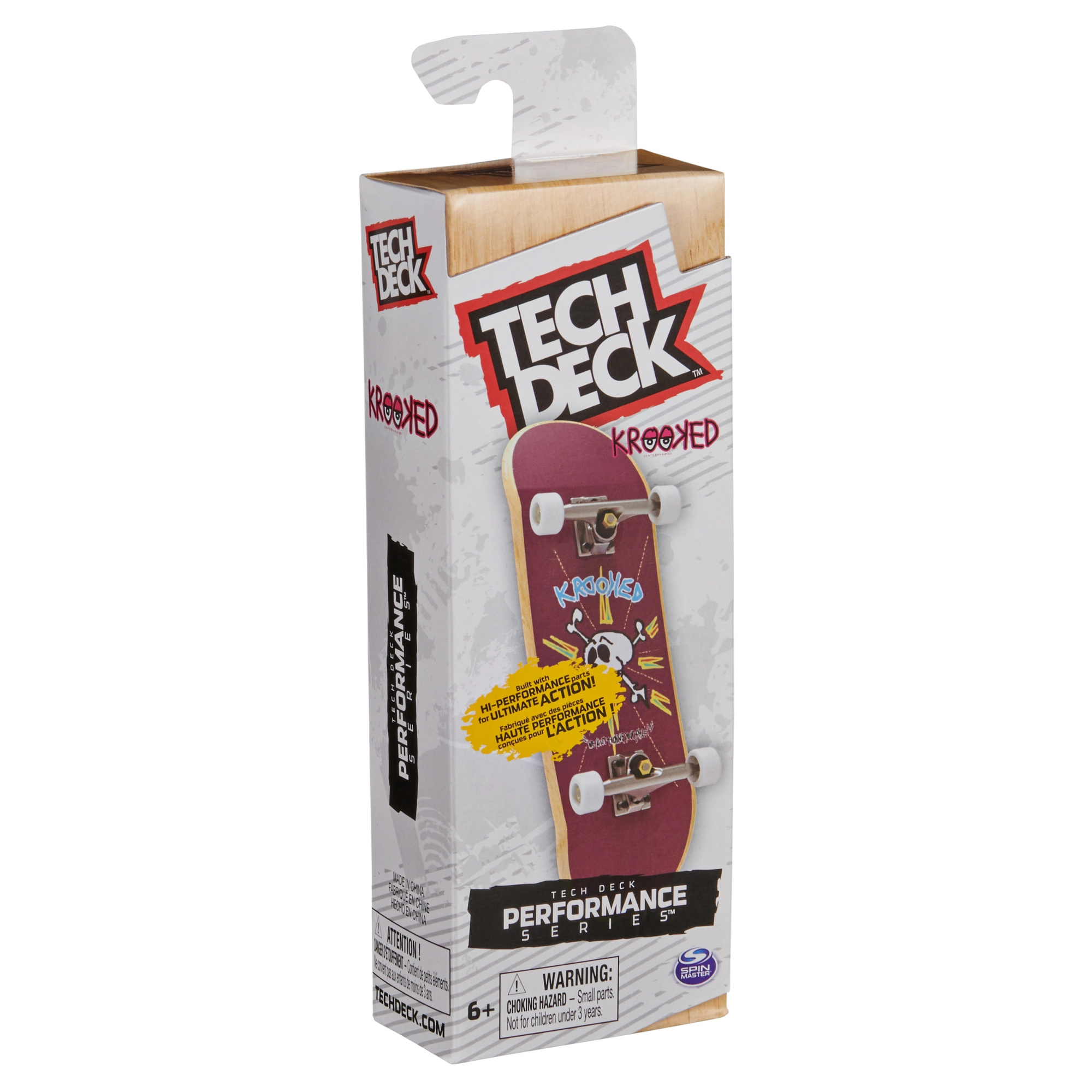 Открийте реалистичния фингърборд от серията Performance на марката Tech Deck с графика KROOKED. Дървената дъска, пяна грип, гумени бушинги и по-меки, сцеплени колелца осигуряват по-добър контрол, прецизност и усещане за каране като на истински скейтборд – идеален за учене и изпълнение на трикове с пръсти у дома и в движение.