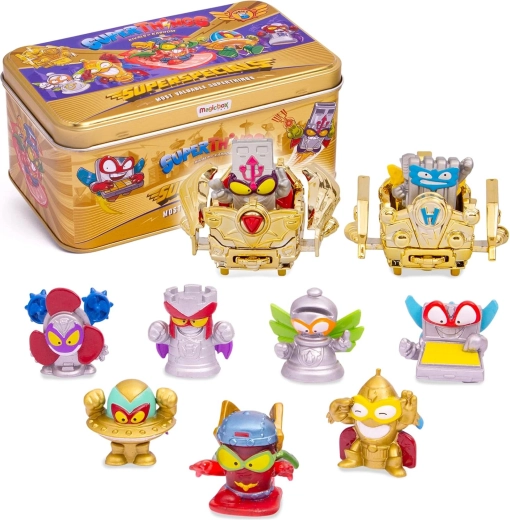 Ексклузивният сет SuperThings Superspecials предлага луксозна златна метална кутия, в която безопасно да съхранявате своите съкровища от света на Kaboom City. Всяка фигурка представлява оживял предмет – било смел супергерой или хитър злодей – идеални както за игра, така и за разширяване на колекцията.