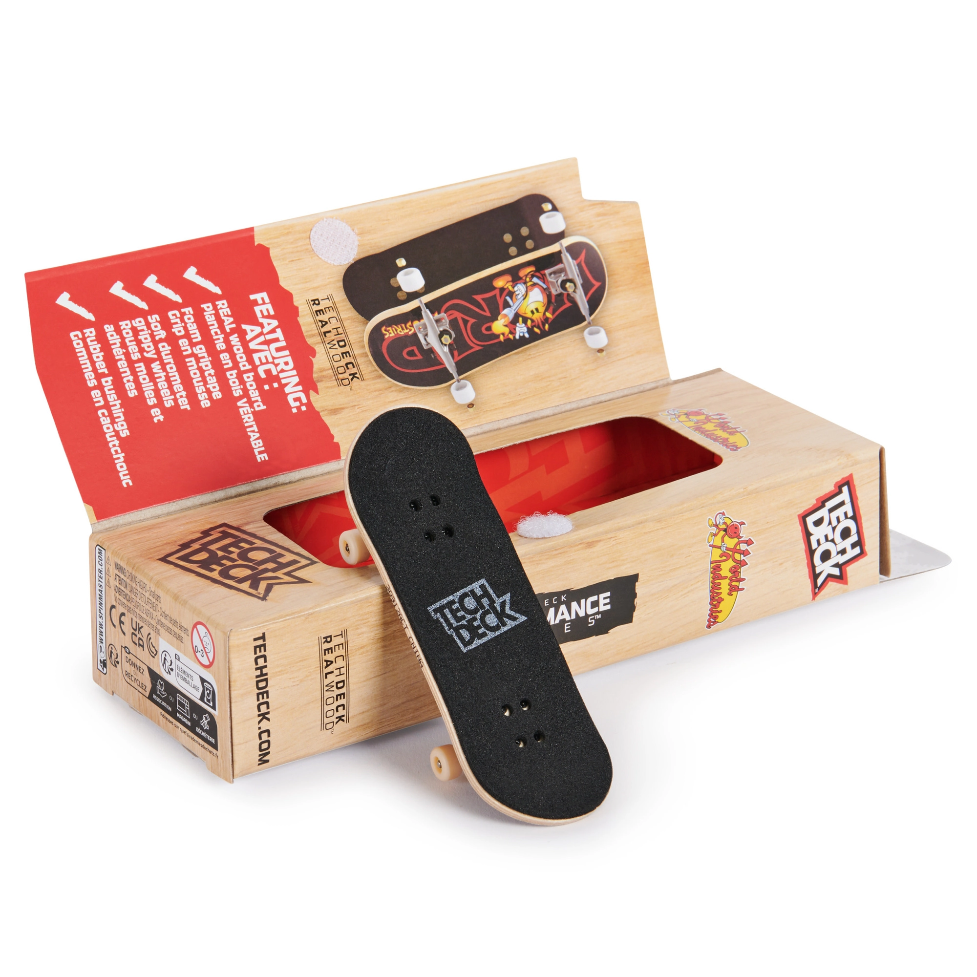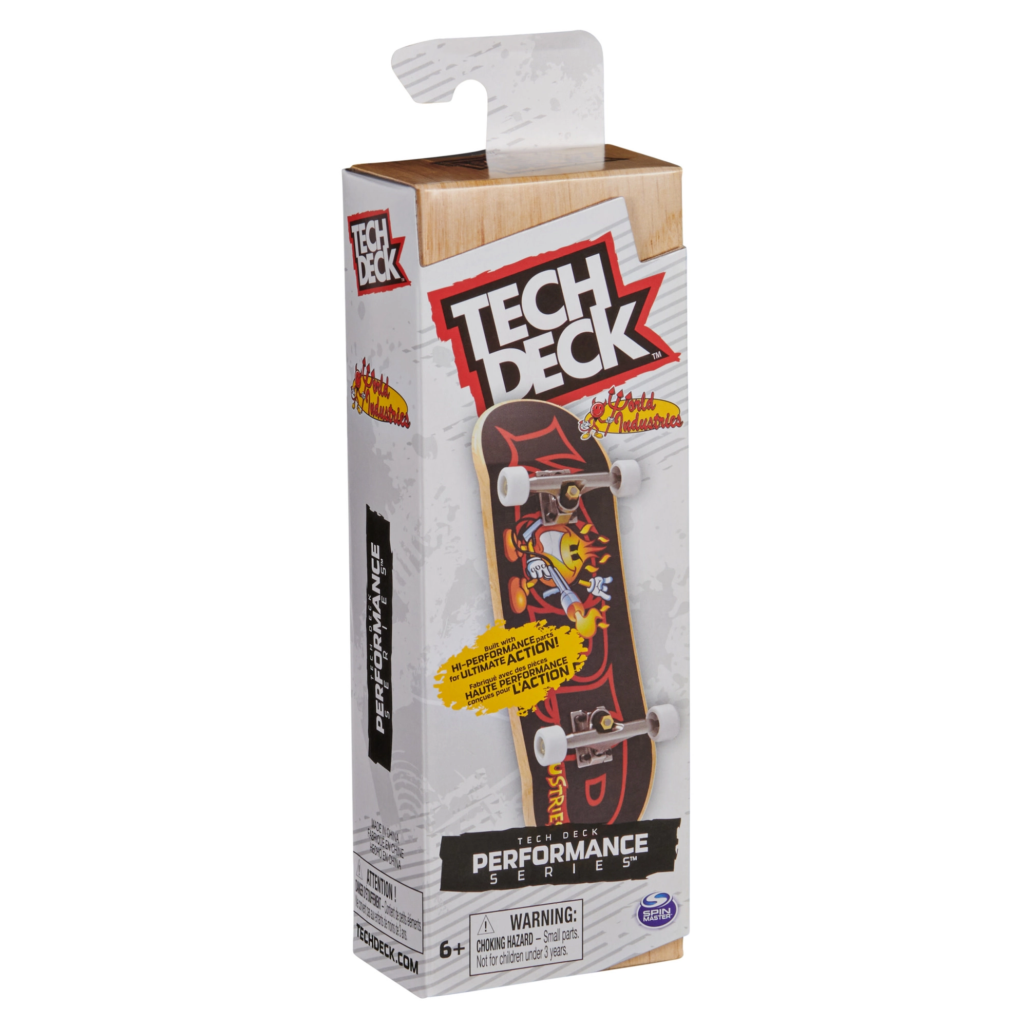 Fingerboard Tech Deck Performance в дизайна WORLD INDUSTRIES носи автентично изживяване благодарение на дървената дъска, металните тракове и сцеплението на колелцата. Конструкцията е проектирана за по-висока прецизност, по-плавен оттласък и по-добър контрол при технически трикове.