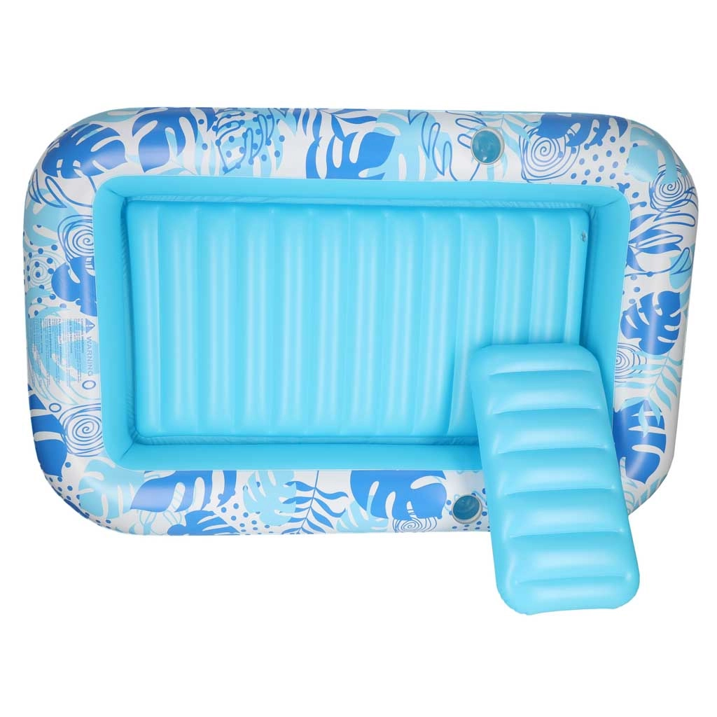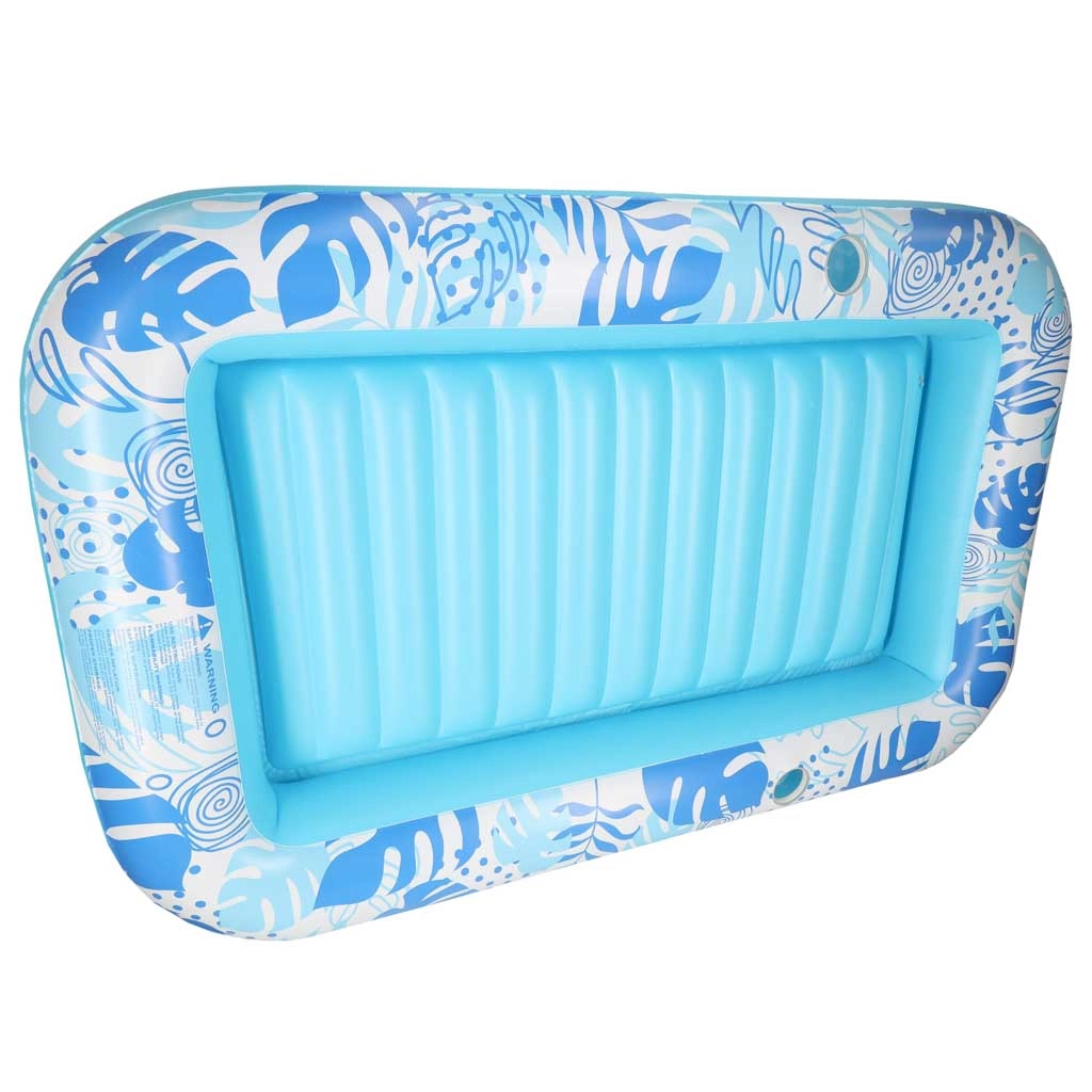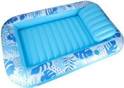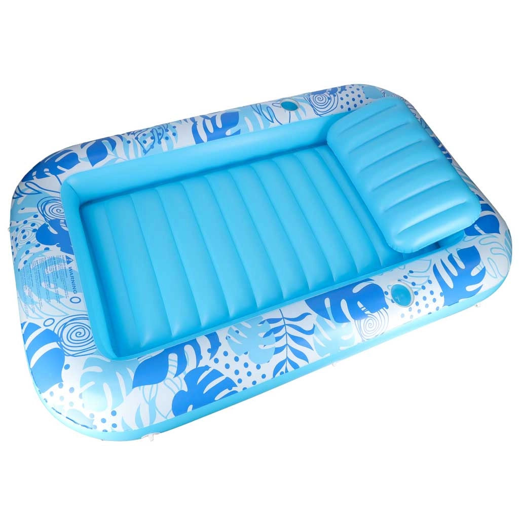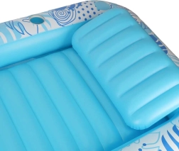 Създайте своя лична зона за релакс върху водната повърхност. Надуваемият шезлонг с отделяема възглавница в синьо-бял дизайн съчетава удобство, стабилност и стил. Бързо се надува с компресор или електрическа помпа и благодарение на множеството въздушни камери запазва форма дори при по-продължителна употреба.