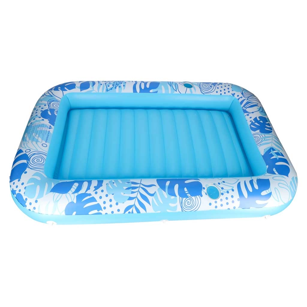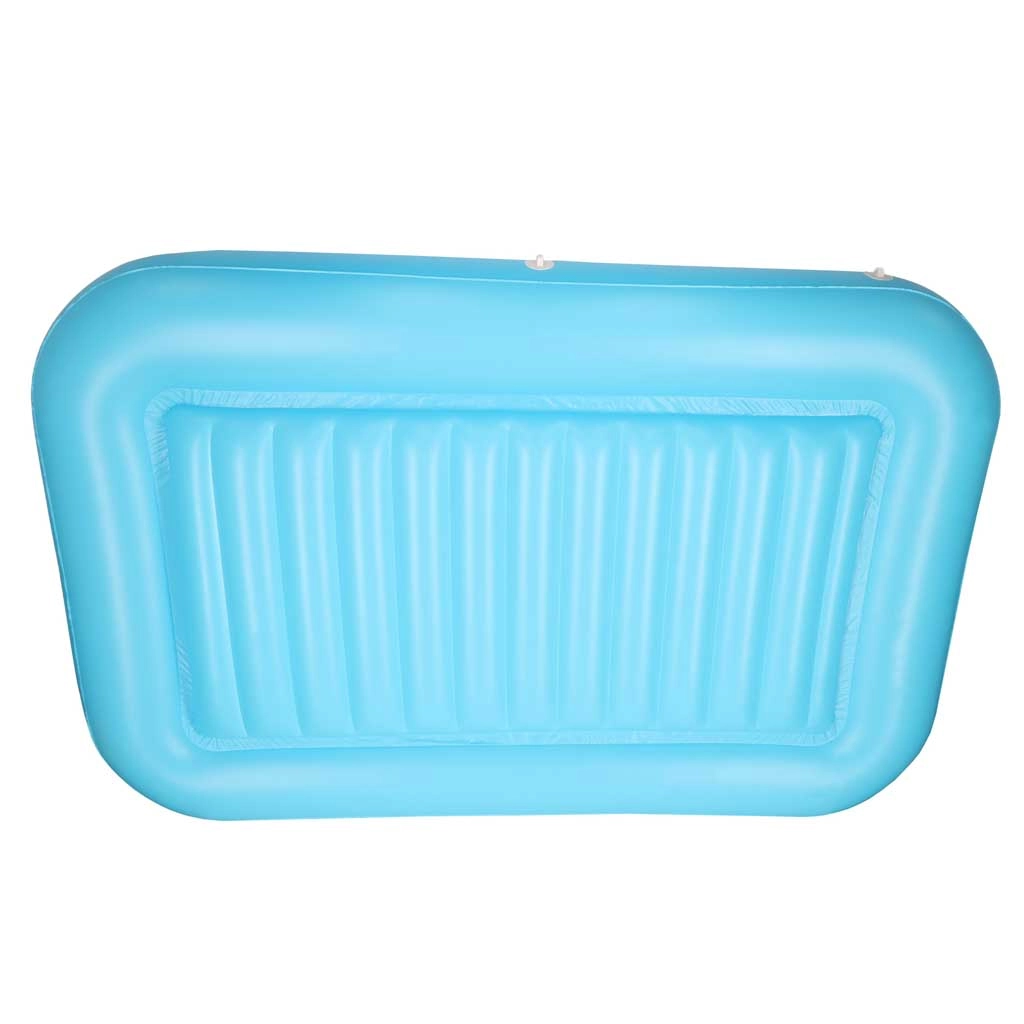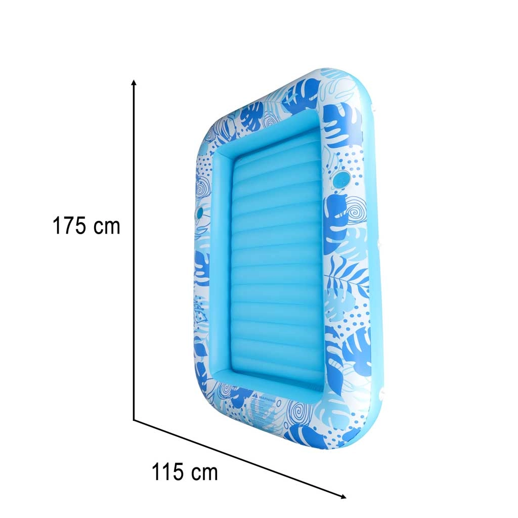 Създайте своя лична зона за релакс върху водната повърхност. Надуваемият шезлонг с отделяема възглавница в синьо-бял дизайн съчетава удобство, стабилност и стил. Бързо се надува с компресор или електрическа помпа и благодарение на множеството въздушни камери запазва форма дори при по-продължителна употреба.