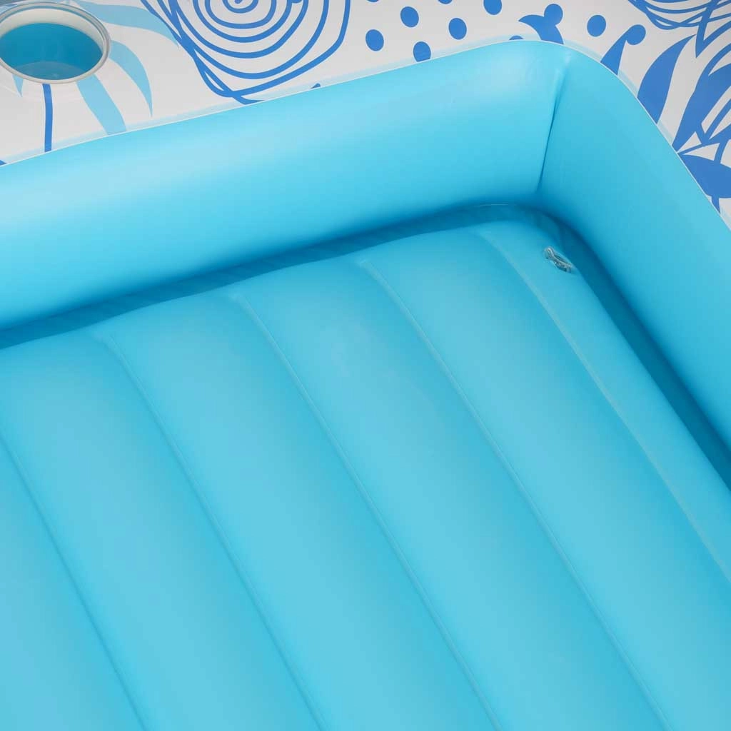 Добре обмислени детайли като 2 вградени държача за напитки и обиколен въже за лесно придърпване към брега повишават безопасността и комфорта във водата. Качественото PVC с дебелина 0,25 мм осигурява издръжливост при летни условия, а меко оребрената лежаща част предоставя приятна опора.