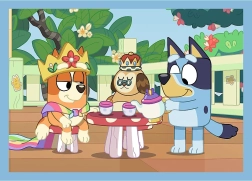 Открийте веселия свят на BLUEY с този комплект от четири пъзела в една опаковка. Благодарение на различния брой части е идеален за постепенно усъвършенстване на уменията на децата и гарантира забавление за цялото семейство. Готовите изображения имат практичен размер, който се подрежда лесно дори на по-малка маса.