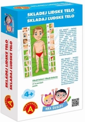 Играта „Училище – Сглобявай човешкото тяло“ е чудесна образователна игра, която помага на децата игриво да опознаят частите на тялото. Съдържа пъзел карти, които позволяват на децата да идентифицират и назовават части като ръка, око, нос и други части на тялото. Всяка картa има свой уникален формат и затова пасва само на правилното място.