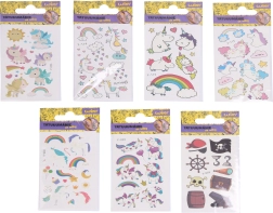 Открийте магията на временните татуировки, които след зареждане със светлина озаряват в тъмното. Децата могат да избират от любими мотиви с еднорози и пирати и да създадат оригинален стил за всеки ден, парти или детски карнавал.