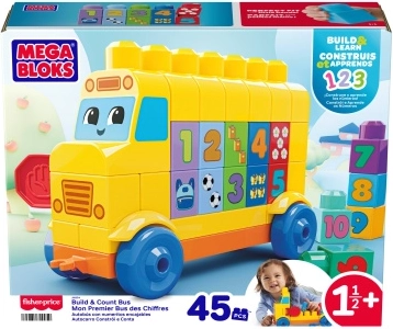 Открийте играта като учене с този цветен автобус от MEGA BLOKS, който учи децата да редят и броят от 1 до 10. Конструктор с 45 части, включително шаси с колела, изтегляща се стоп-табела и големи блокчета с числа и картинки, подпомага фината моторика, логическото мислене и ранната математика. Идеален за деца от 18 месеца.