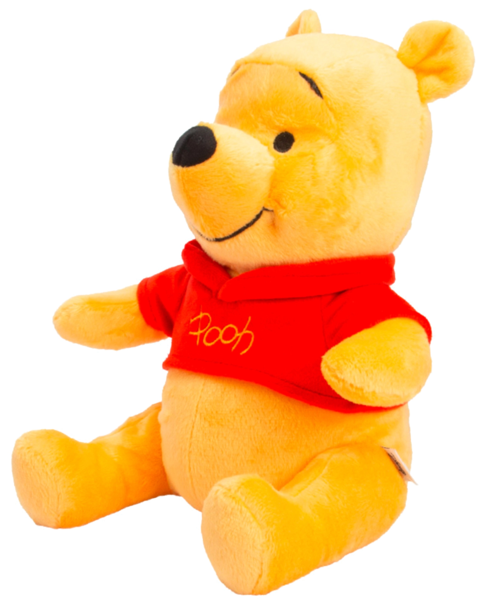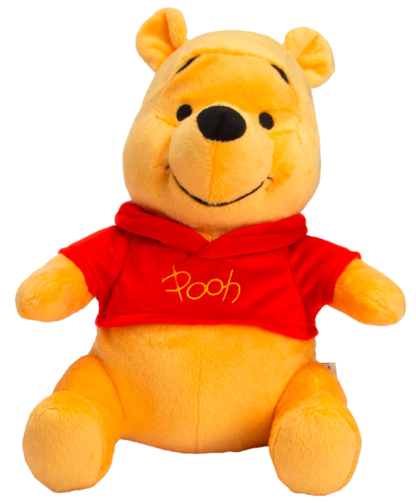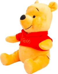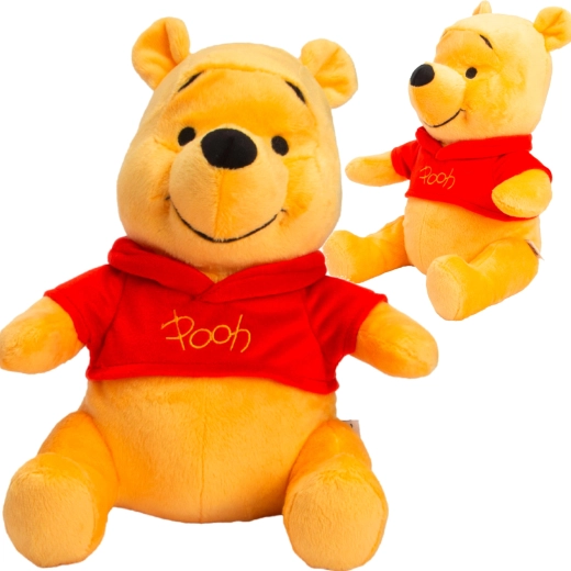 Плюшената играчка седи самостоятелно, така че изглежда чудесно на рафта. Червената блузка с надпис „Pooh“ подчертава автентичния вид на героето.