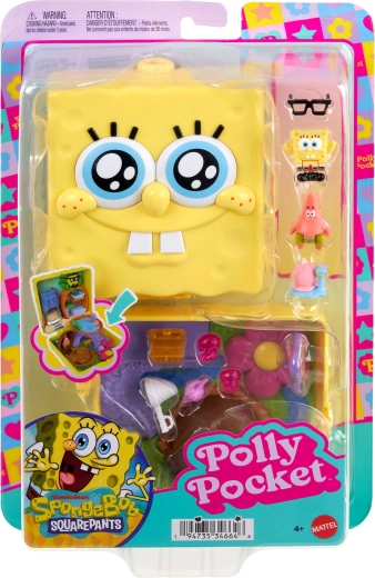 Вземете забавлението в джоба си! Този компактен комплект Polly Pocket с тема SPONGEBOB SQUAREPANTS се разгръща в детайлно изработена мини сцена на Бикини Ботъм – ще видите ананасовата къща на СпонджБоб, каменната къща на Патрик, къщата на Скуидвард и полето с медузи. Благодарение на затварящото се калъфче и здравата изработка играта е лесно преносима и идеална за път.