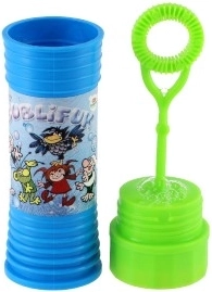 Забавен бълбукащ разтвор за деца с обем 50 ml, който създава красиви дъгови балони, а в капачката крие мини главоблъсканица с топче. Отличен избор за детски партита, игри на открито и като малък подарък. Мотивите и цветовете се различават според наличностите.
