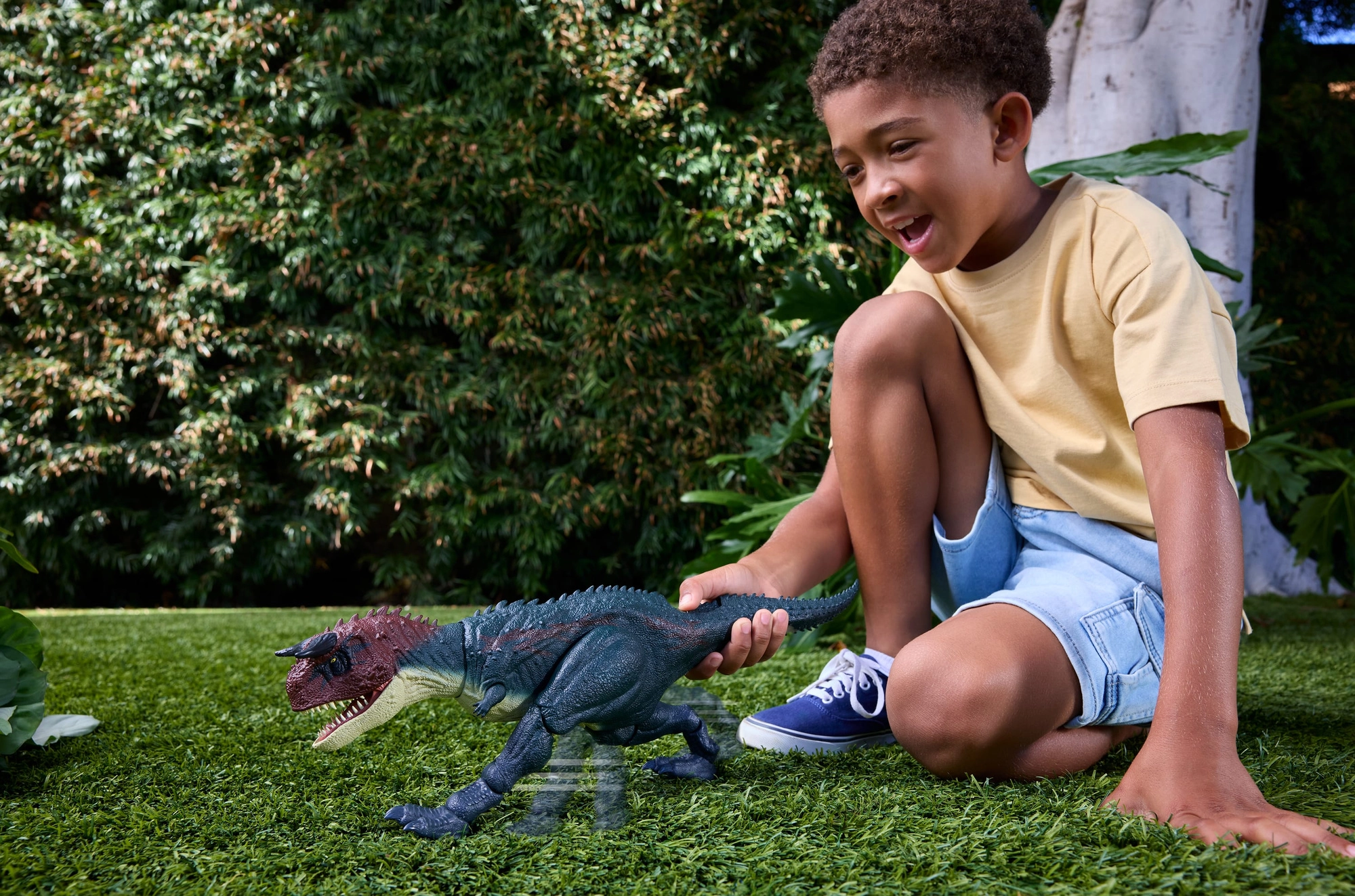 Механизмът в опашката активира синхронизиран бяг на задните крака, отваряне на челюстите и впечатляващи ревове – идеално за екшън сцени и преследвания.