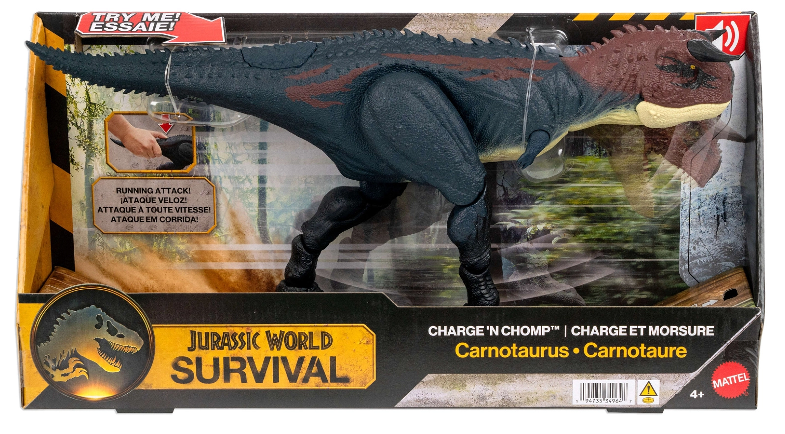 Текстурираната кожа, рогата и филмовите цветове, вдъхновени от Jurassic World, правят Карнотаура завладяваща фигурка за игра и колекционерско изложение.