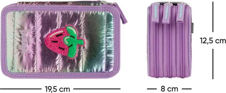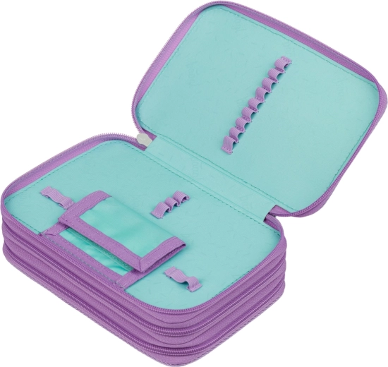 Този трислоен ученически несесер в нюанс Lavender е създаден за максимална прегледност и удобство при ежедневна употреба. Трите отделни нива предоставят достатъчно място за моливи, флумастери, химикалки, линийки и други дребни вещи, докато качествените ципове YKK гарантират гладко и дълготрайно надеждно закопчаване.