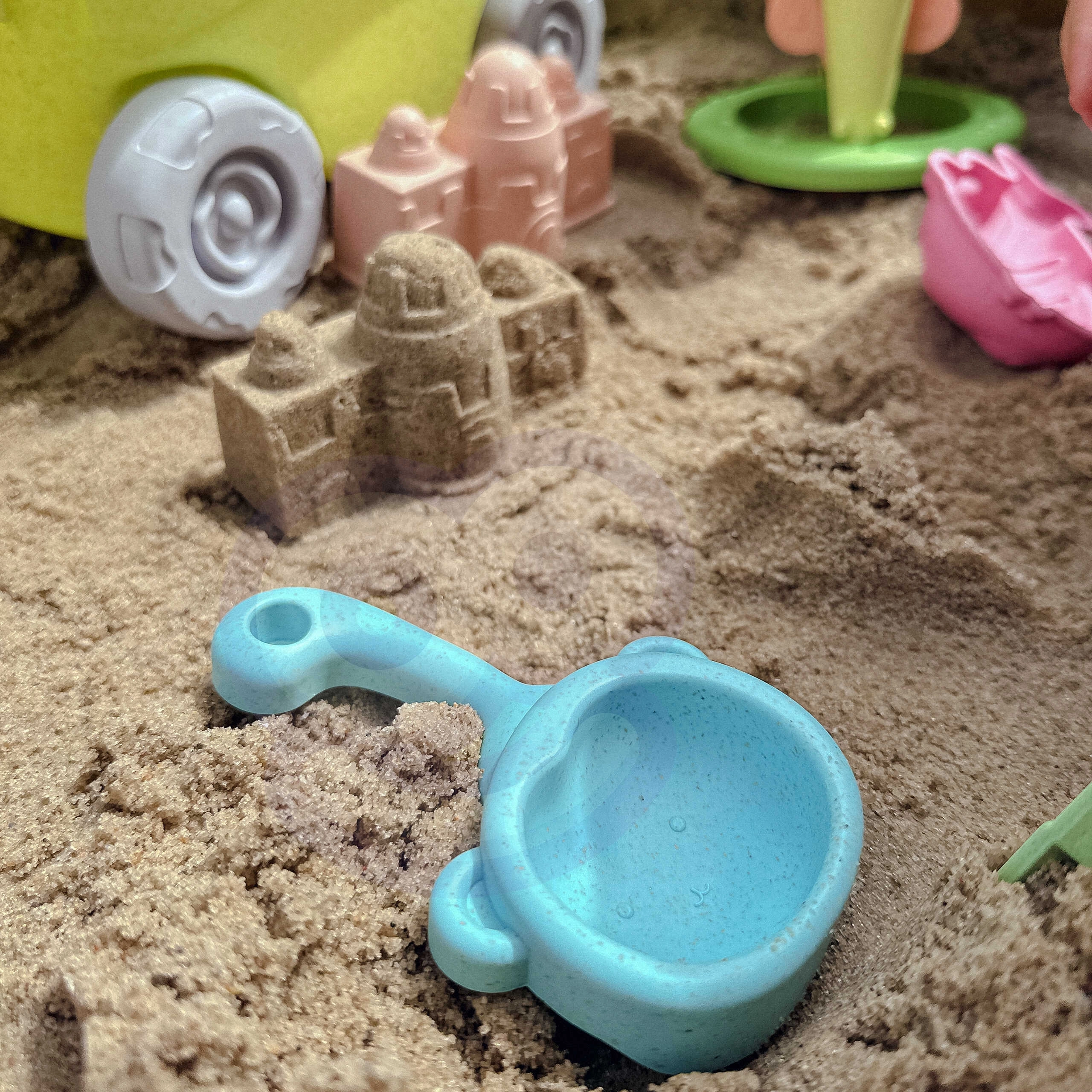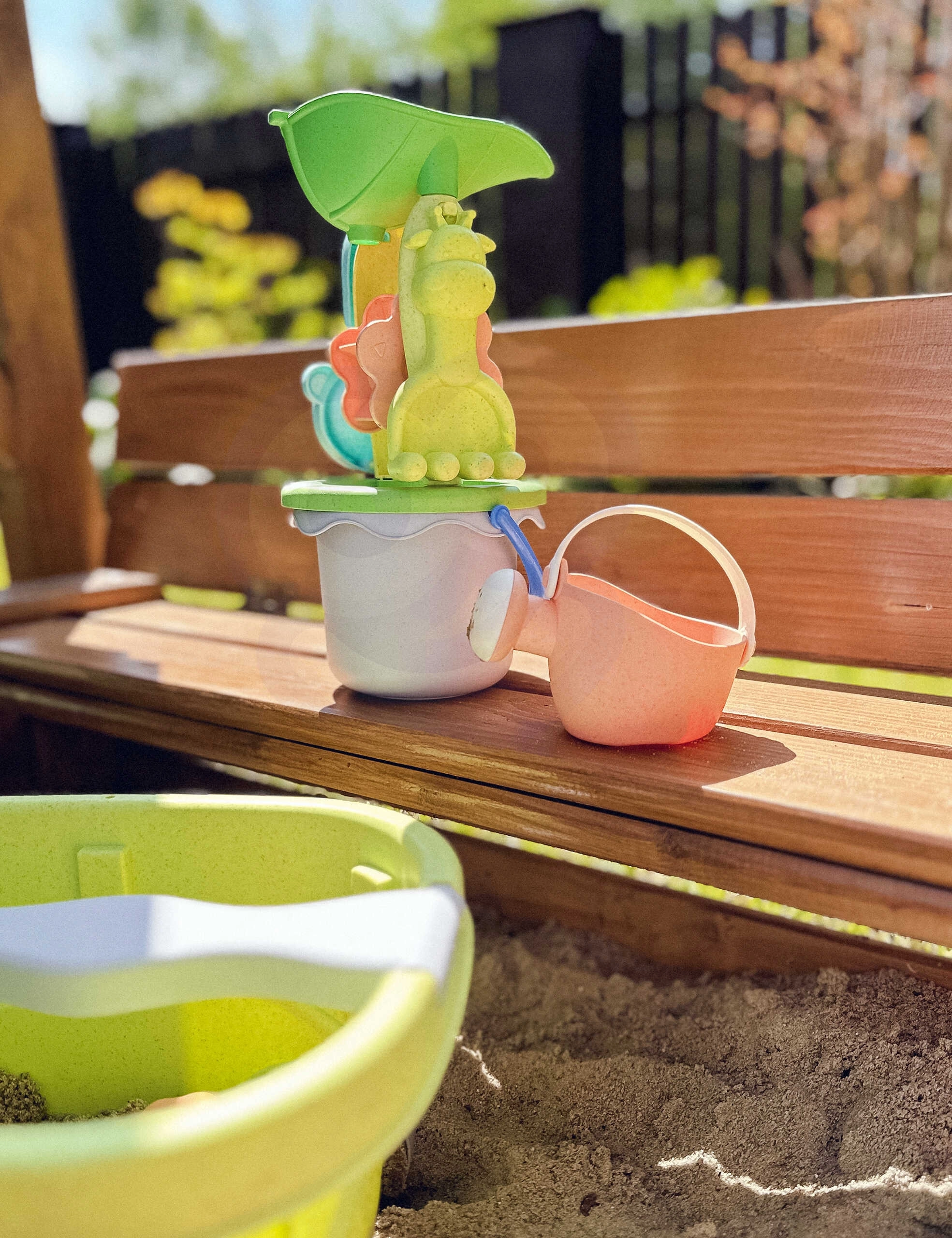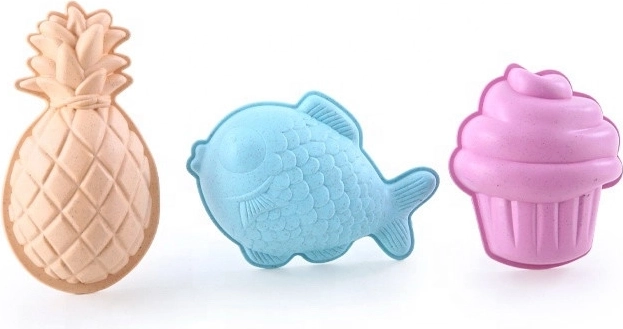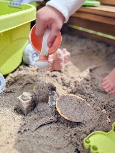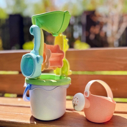 Комплектът е изработен от органичен, биоразградим материал и е компостируем, което го прави щадящ природата. Гладките заоблени ръбове и леката конструкция насърчават безопасната игра и развитието на детското въображение и фината моторика.