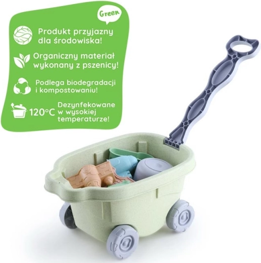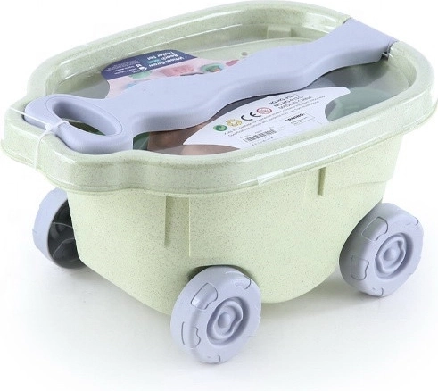 Лека пластмасова количка със здрава дръжка и колелца улеснява децата при пренасяне на играчки, пясък и вода. Подкрепя самостоятелността и дава ново измерение на играта.