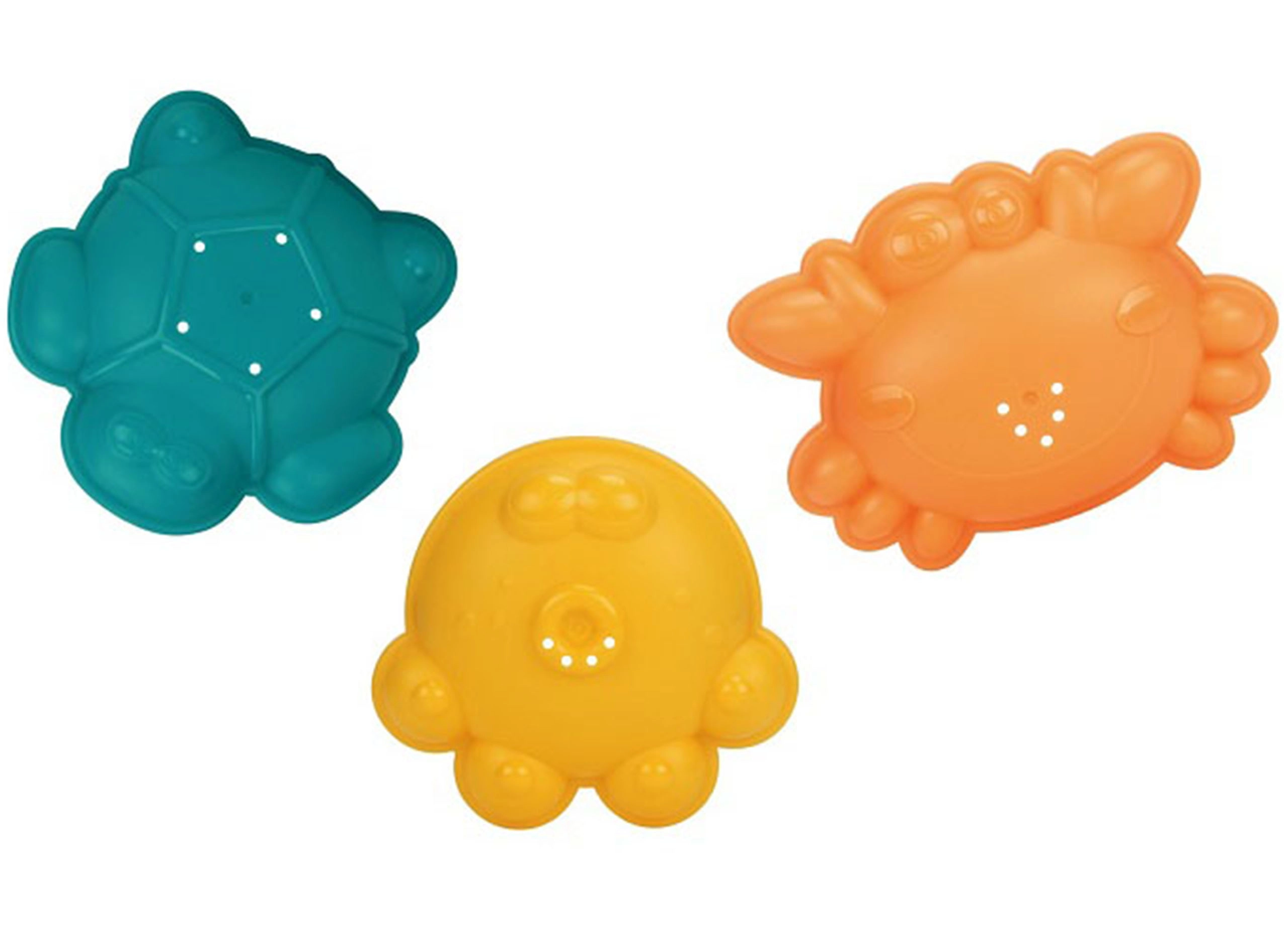 Трите цветни формички насърчават фантазията и творчеството в пясъка и водата. Децата лесно оформят костенурка, рак или октопод.