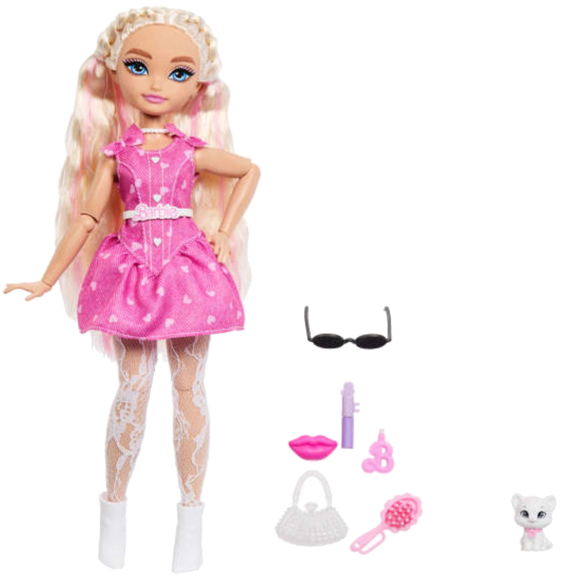 Част от комплекта са 7 аксесоара: очила, чанта с блясък, четка, червило, „спирала“, огледалце и очарователна фигурка котенце. Децата могат да играят в света на модата, красотата и инфлуенсърите, да развиват въображението и фината моторика.