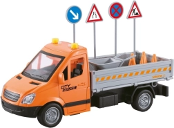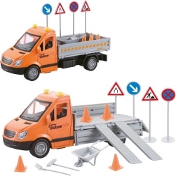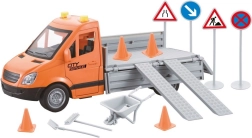 В комплекта са включени пътни конуси, знаци, бариери и дребни инструменти, с които децата лесно ще създадат собствен строеж или затворен участък на пътя. Здравата пластмасова изработка е безопасна и подходяща за ежедневна игра.