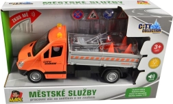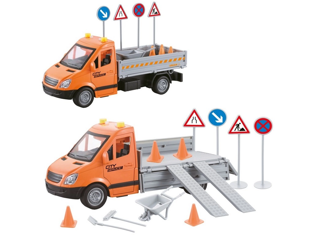 Този оранжев камион с товарна платформа и падащи рампи предлага на децата автентично изживяване от градските услуги и пътните работи. Инерционното задвижване гарантира плавно придвижване без батерии, докато реалистичните детайли и аксесоарите подпомагат развитието на въображението и фината моторика.