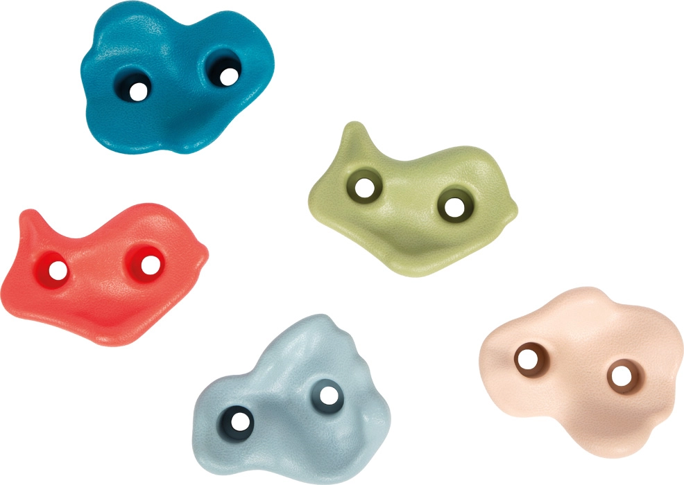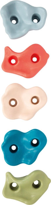 Комплектът от пет устойчиви катерачни хватки SMALL FOOT внася забавление от катеренето в детската стая и в градината. Благодарение на текстурирана повърхност, двуточково закрепване против завъртане и свободно разположение лесно създавате маршрути според възрастта и уменията на децата. Включва монтажен обков, товароносимост до 80 кг и възможност за употреба на закрито и открито.