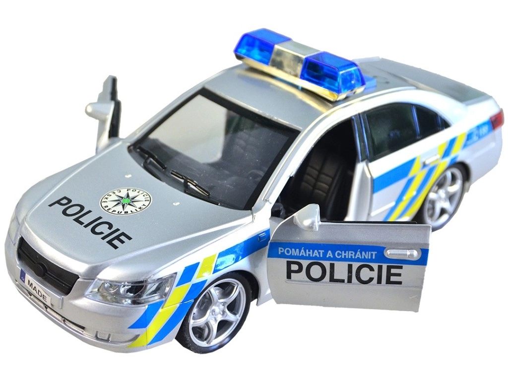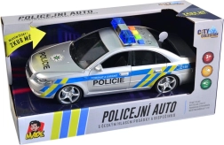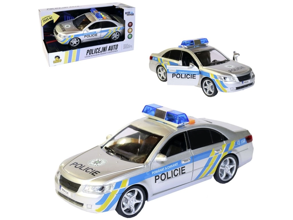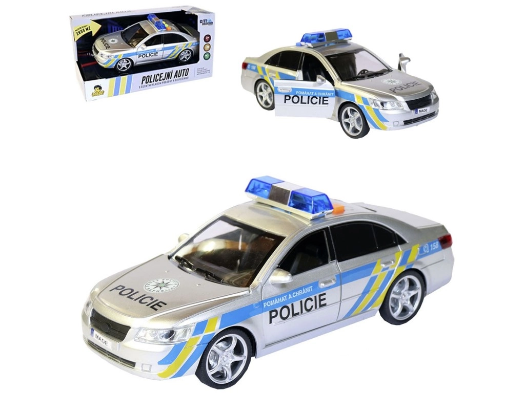 Полицейската кола се захранва с 3 батерии тип AG13, които лесно се подменят. Играчката се доставя в чешка опаковка с размери 29 x 12 x 14 см, което я прави чудесен подарък.