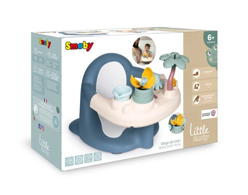 Включен е интерактивен игрови плот с 5 водни активности, които развиват сетивата и фината моторика: водна мелничка, чашка за наливане, палмов пулверизатор, „вълшебно“ цвете и октопод, който пръска вода. Четири здрави вендузи държат седалката стабилно на дъното на ваната за максимална устойчивост. Произведено във Франция.