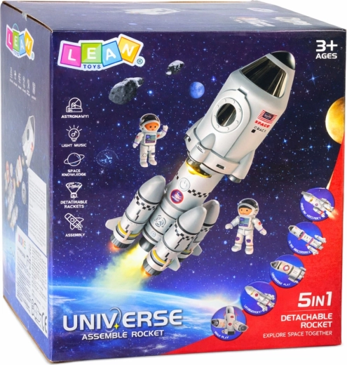 Модулната конструкция позволява лесно сглобяване и разглобяване на елементите и създаване на различни конфигурации на ракетата и кораба. Фигурките астронавти насърчават ролевата игра и създаването на собствени истории. Декоративните стикери придават на ракетата оригинален вид.